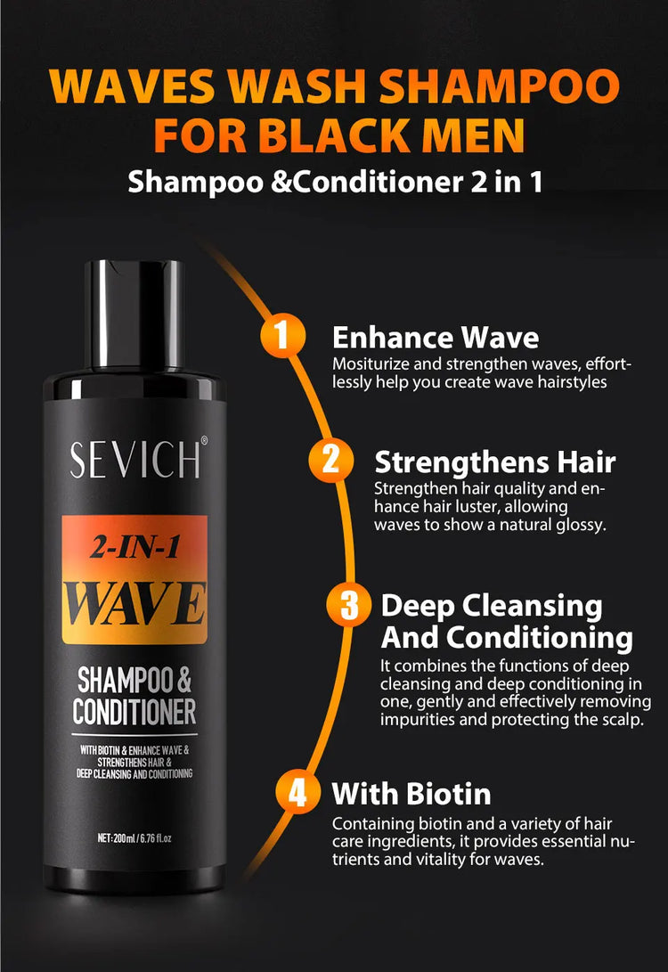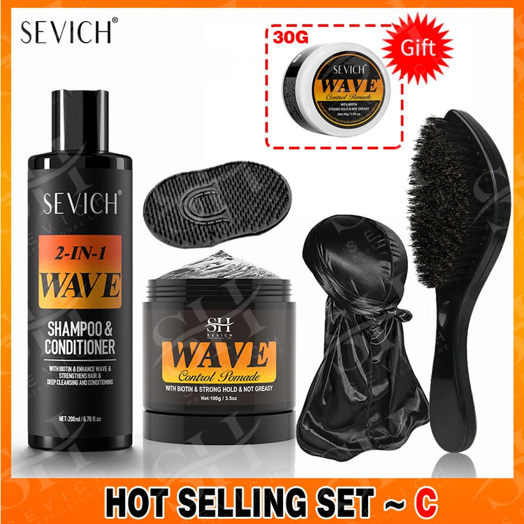 3.53oz Biotin Waves Control Pomade For Men Sevich Sport Strong Hold Wave Hair Gel With Brush Wavy Hair Oil Shampoo Conditioner