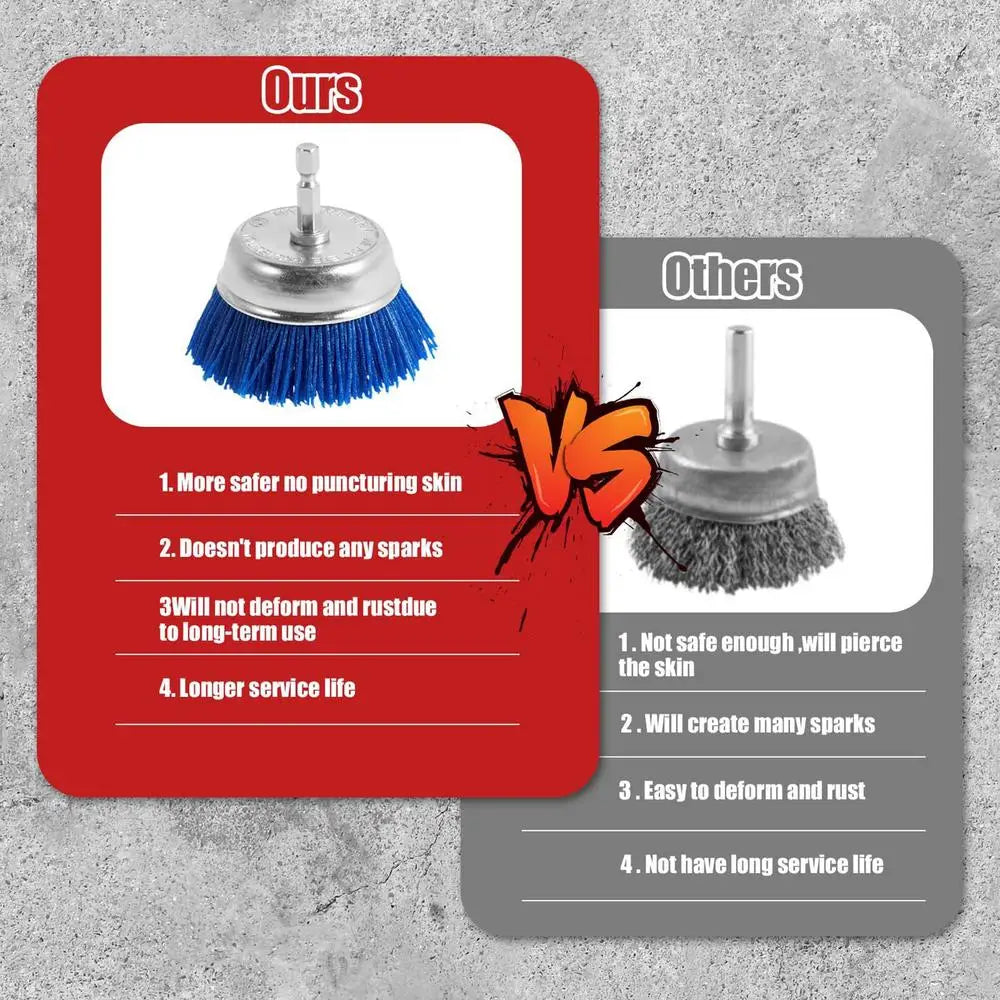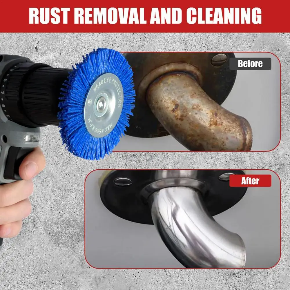2.Powerful Cleaning: Featuring a high-quality nylon filament and hub, our abrasive brush removes rust and dirt with ease, leaving your surfaces free from contamination.