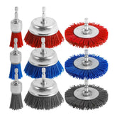 Abrasive Wire Brush Wheel Nylon Filament Drill Wheel Cup Brush Versatile Abrasive Brushes 1/4 Inch Hex Shank 9-Piece Set For