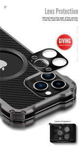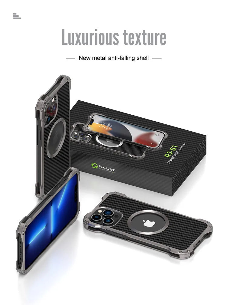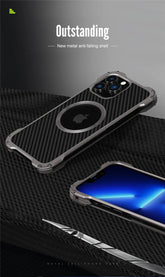 Carbon Fiber Lens Protection Phone Case for iPhone 14 Plus 12 13 Pro Max Mini Compatible with MagSafe Metal Bumpers Cover