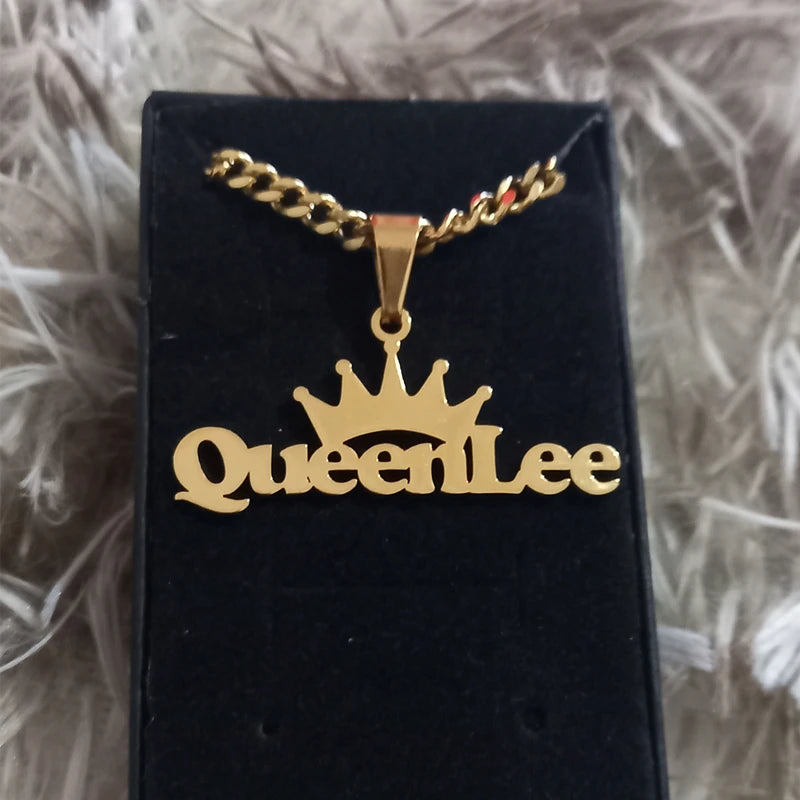 Custom Movable Big Name Pendant Necklace Stainless Steel Cuban Chain Nameplate Personalized Necklace For Women Fashion Jewelry