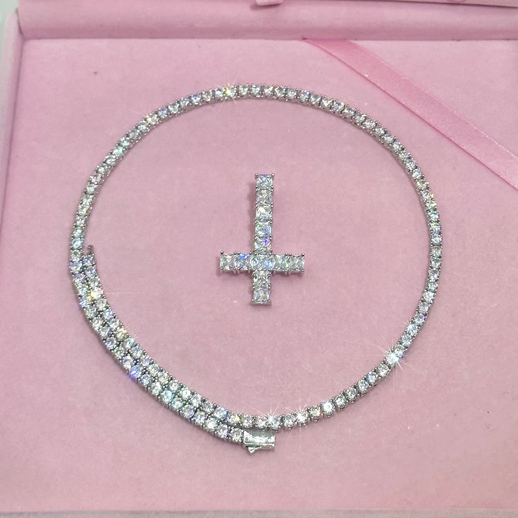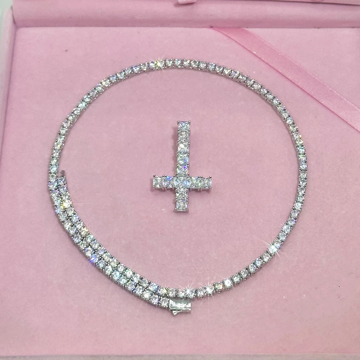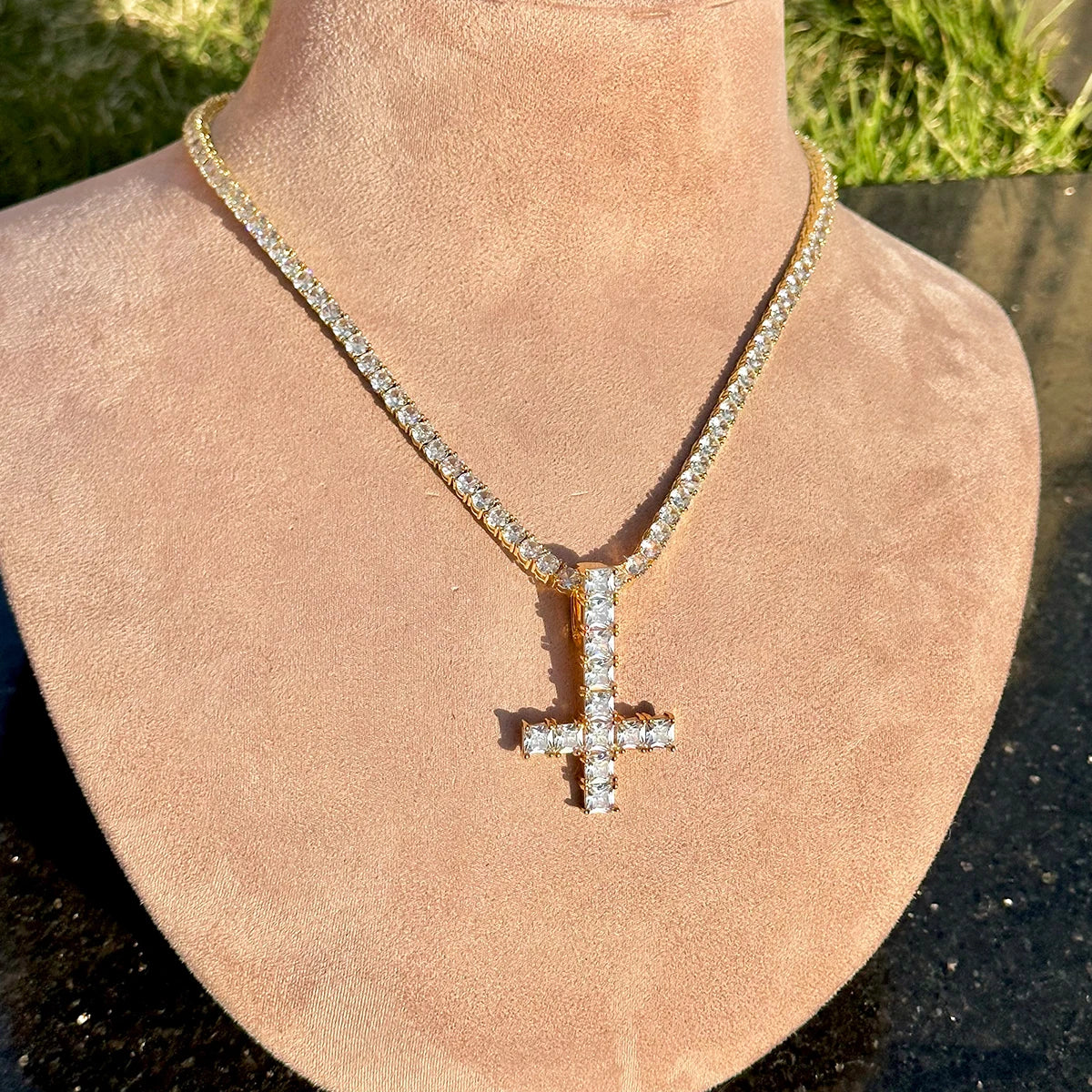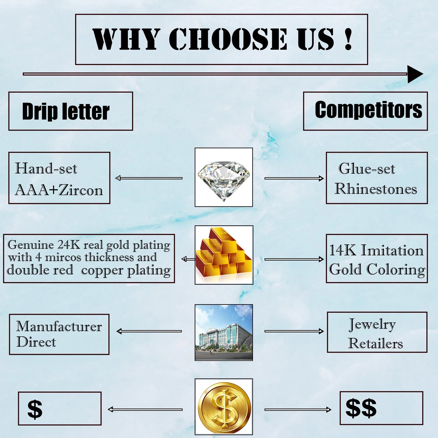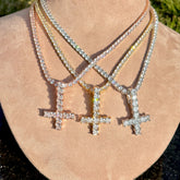 Drip Letter Cross Pendant Necklace Hip Hop Jewelry for Men AAAAA Cubic Zirconia