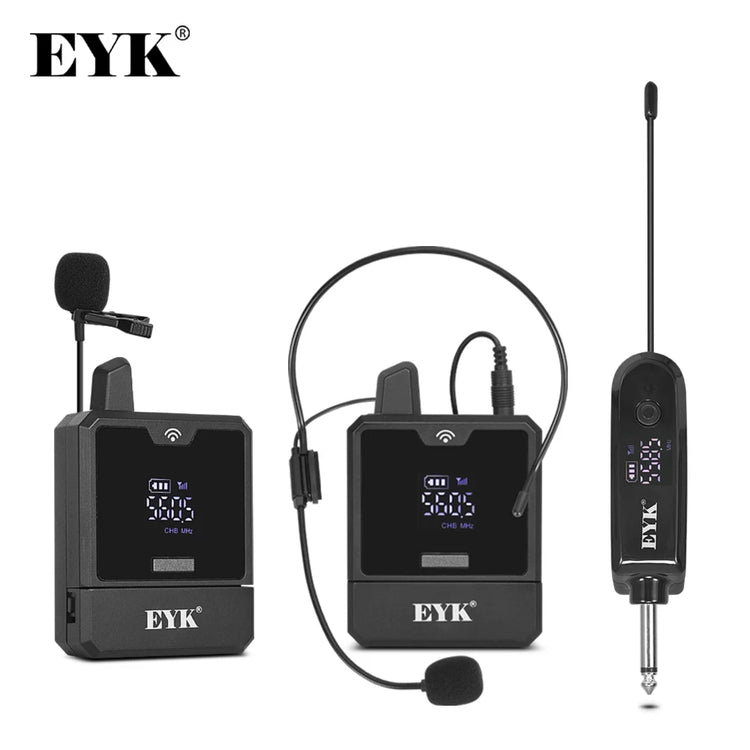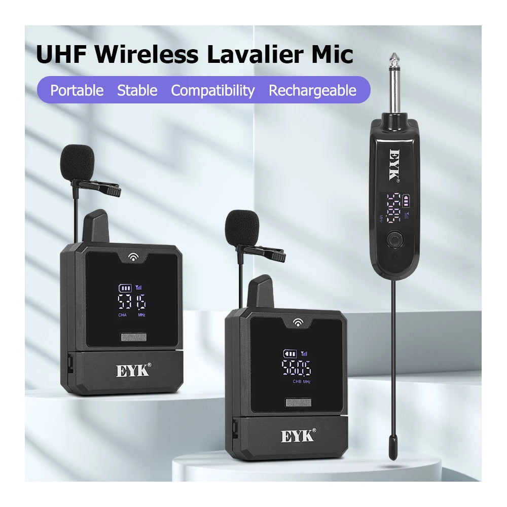 EYK EW102 Dual Channels Wireless Headset Microphone UHF Lavalier Mic Rechargeable for Teaching Speech Interview Live Recording