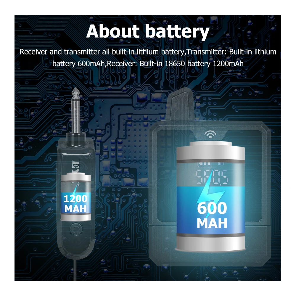 2. Rechargeable receiver with lithium battery(1200mAh), Rechargeable Bodypack Transmitter with lithium battery(600mAh)Can be used continuously for about 4 hours