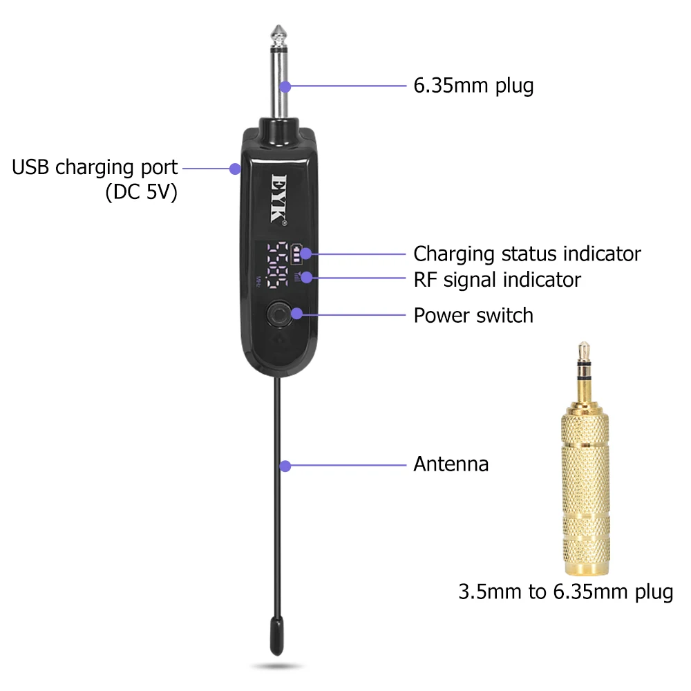 4. Receiver has 6.35mm (1/4") output and a 3.5mm adapter as gift.