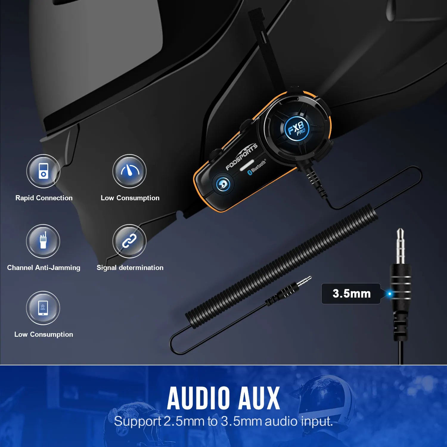 Fodsports FX8 Pro Motorcycle Intercom Helmet Bluetooth Headset, 8 Rider 2000M, FM Radio