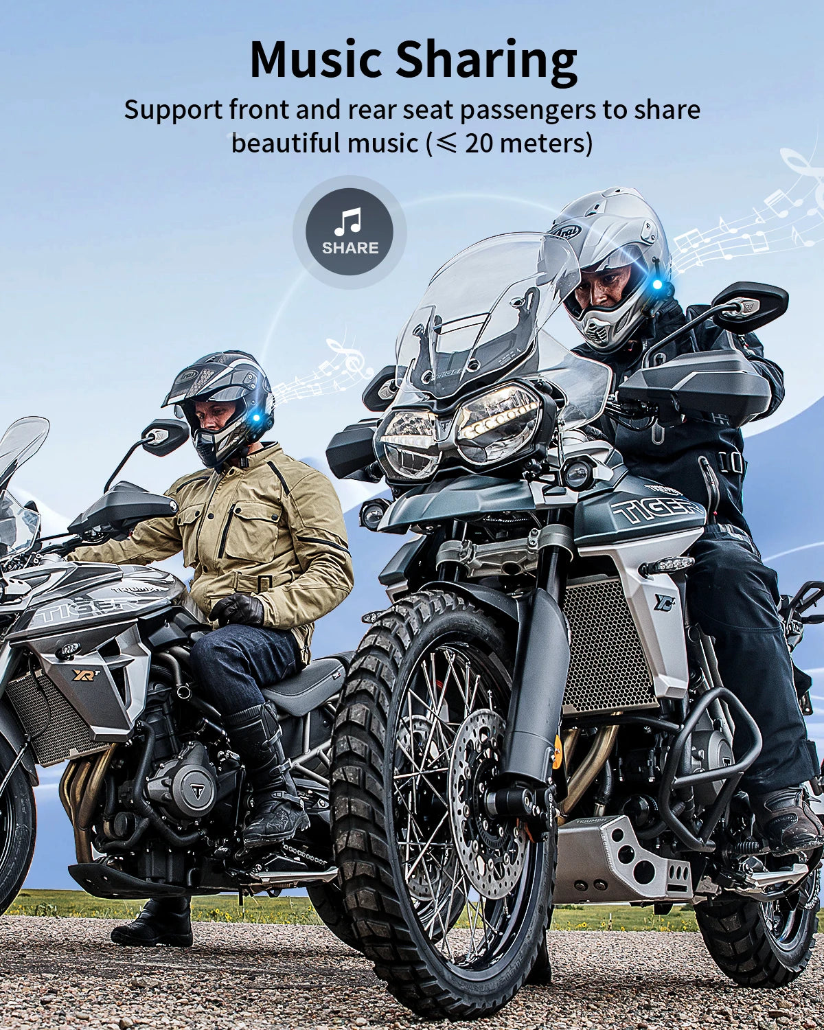 Intercom distance can reach 500 meters (for two riders), 2000 meters (for 10 Riders)