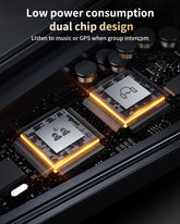 Using dual bluetooth chip design, one part controls bluetooth audio, and the other part controls bluetooth intercom.