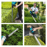 - Handy Wireless Hedge Trimmer: made of lightweight yet sturdy engineering ABS and metal, and it powered by rechargeable lithium battery, which made it portable to use.