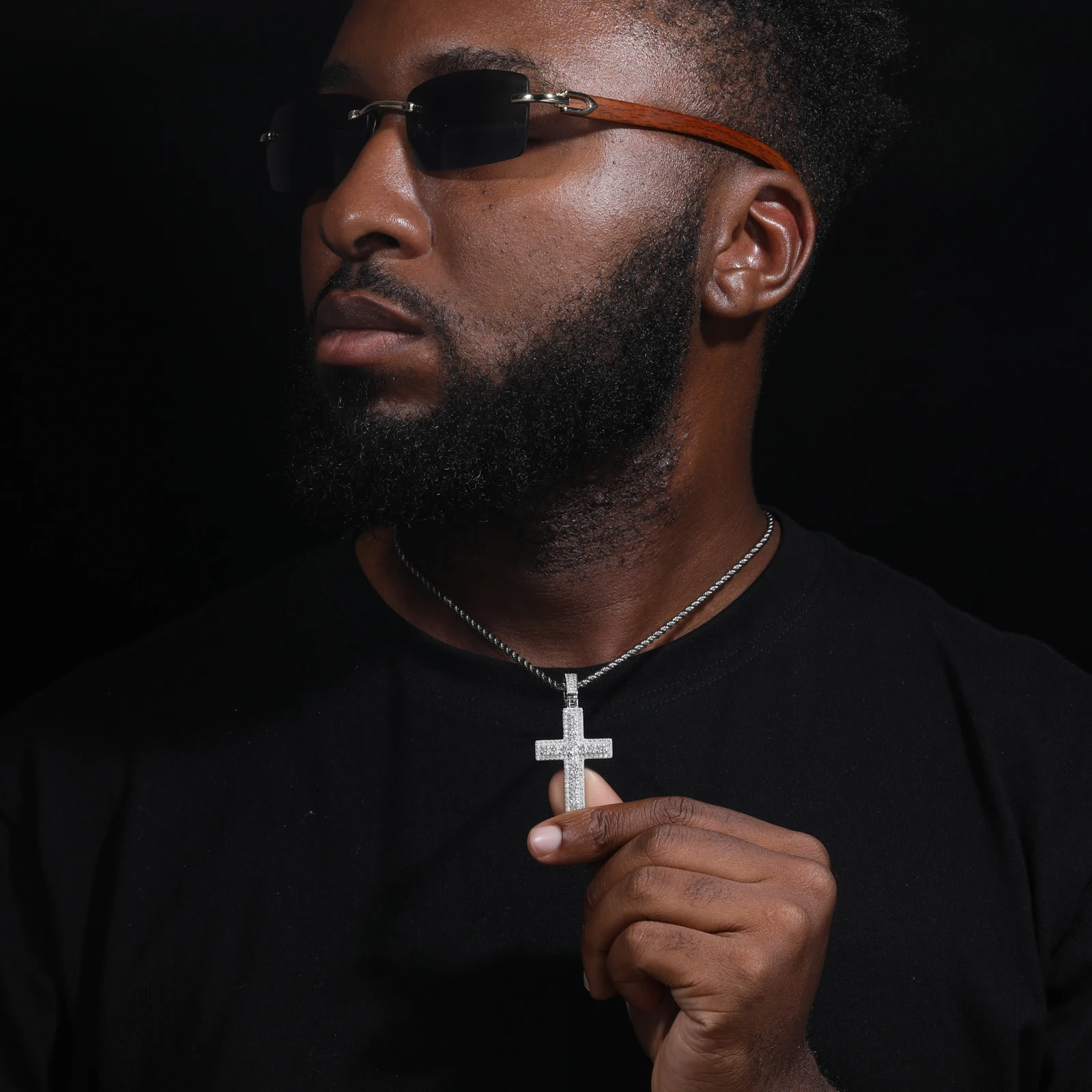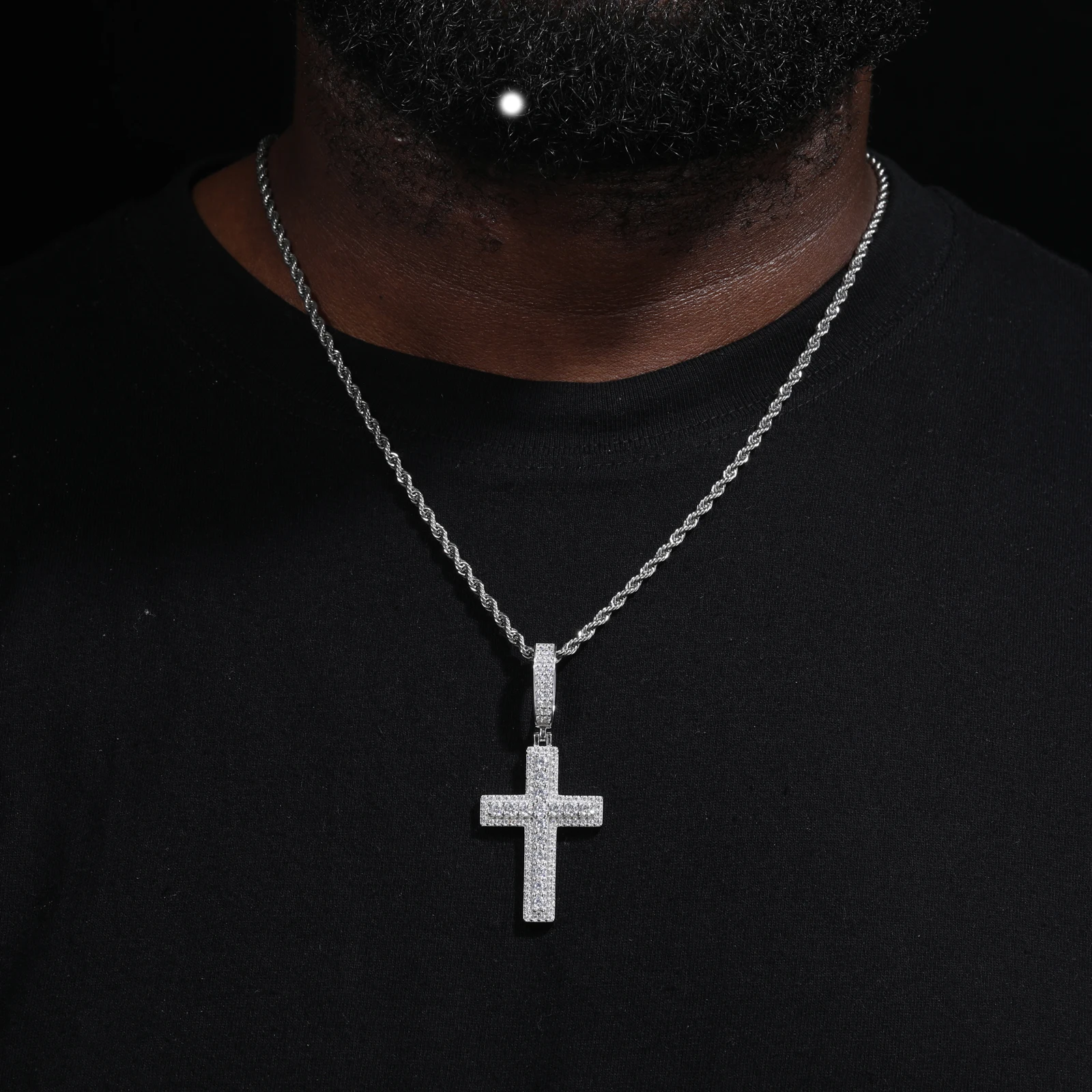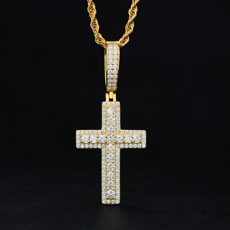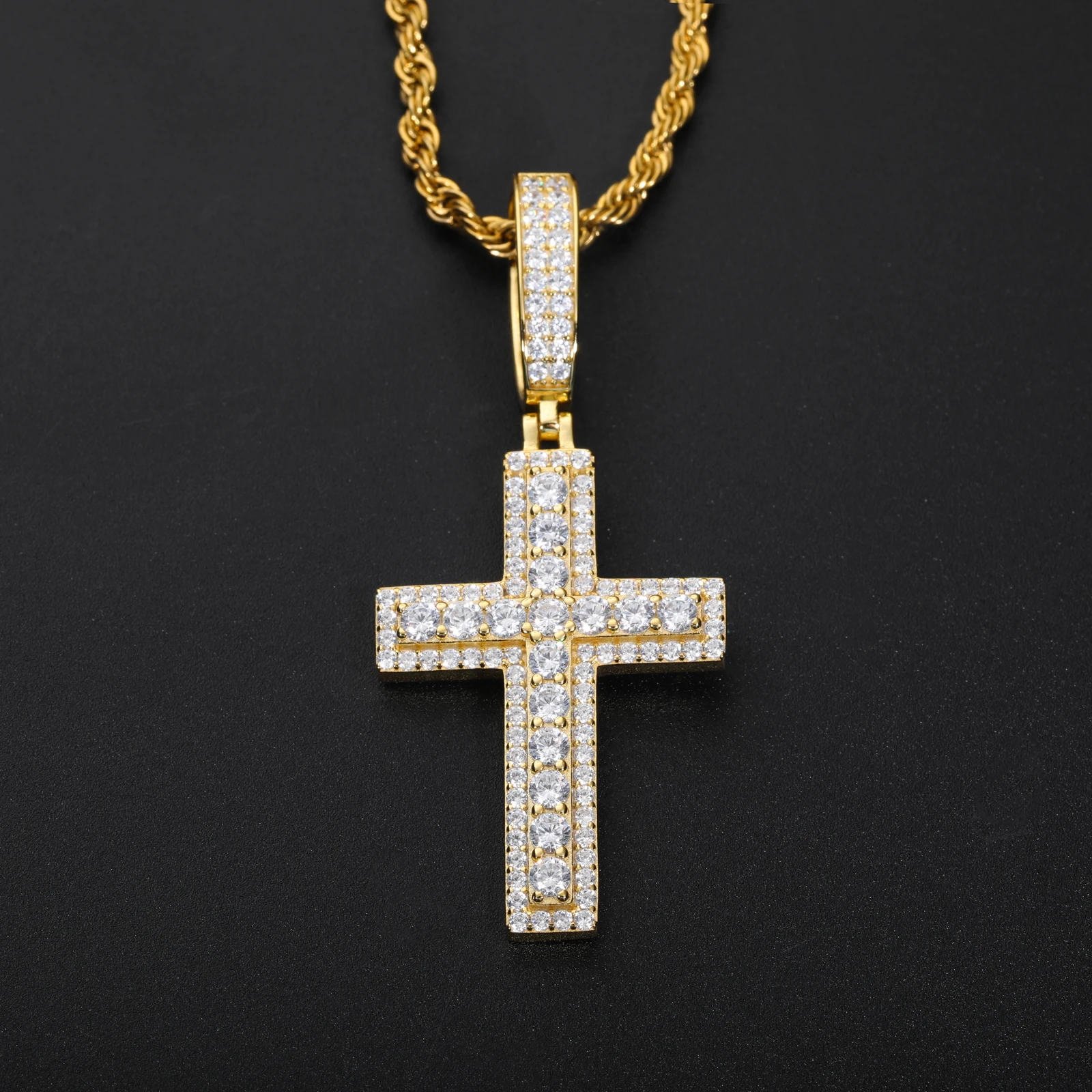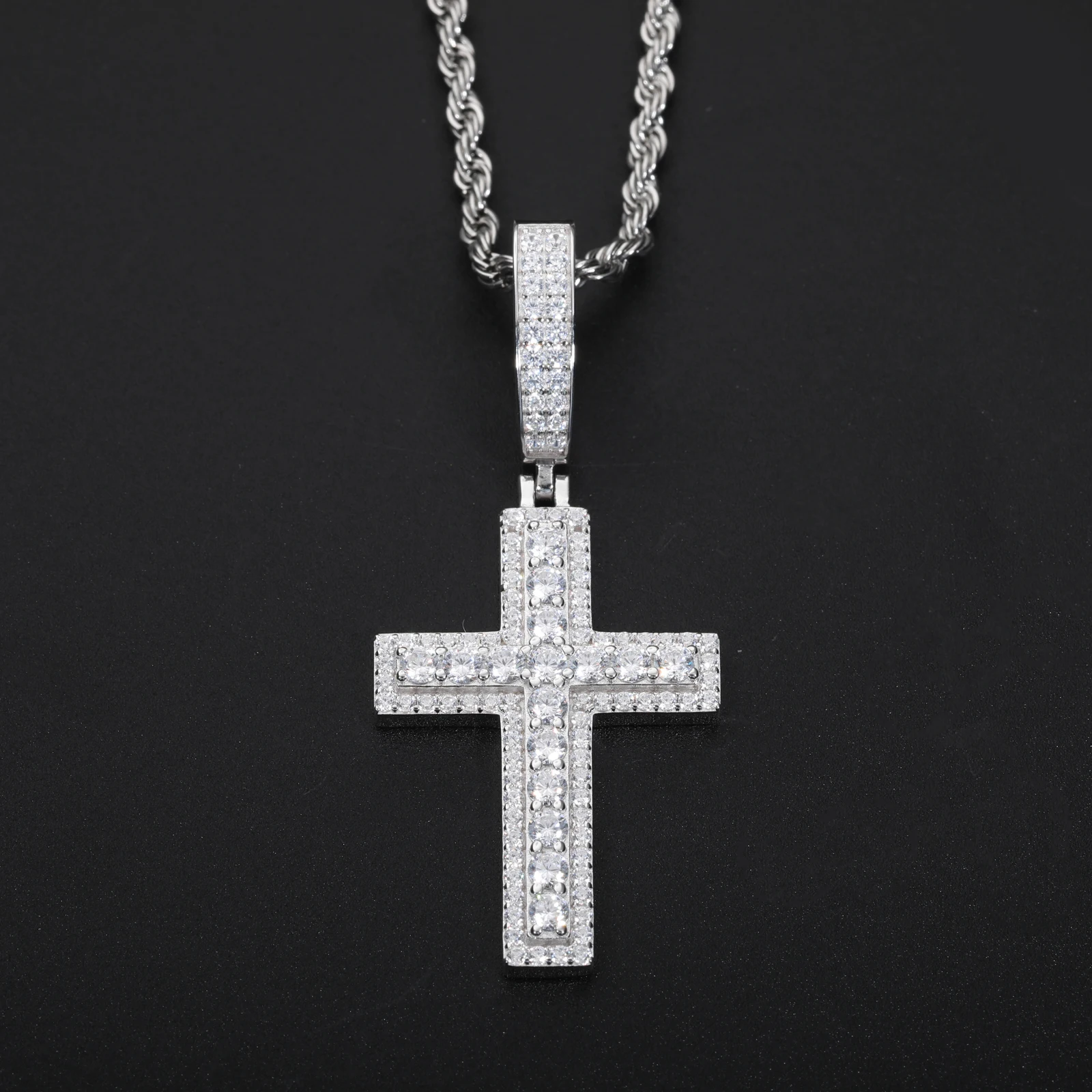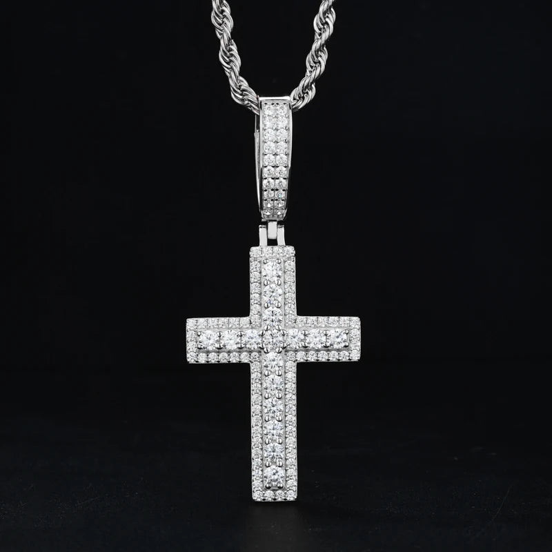 Unisex Iced Out Moissanite Hip Hop Cross Pendant Necklace 925 Sterling Silver Color For Women Charm Fine Jewelry