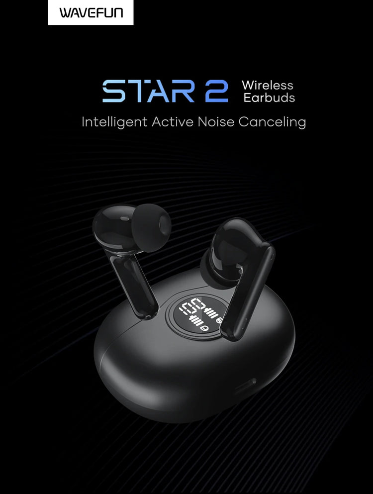 Wavefun Star 2 Bluetooth Earphone V5.3 Wireless Headphones Digital Display Noise Cancelling Earbuds Super Bass
