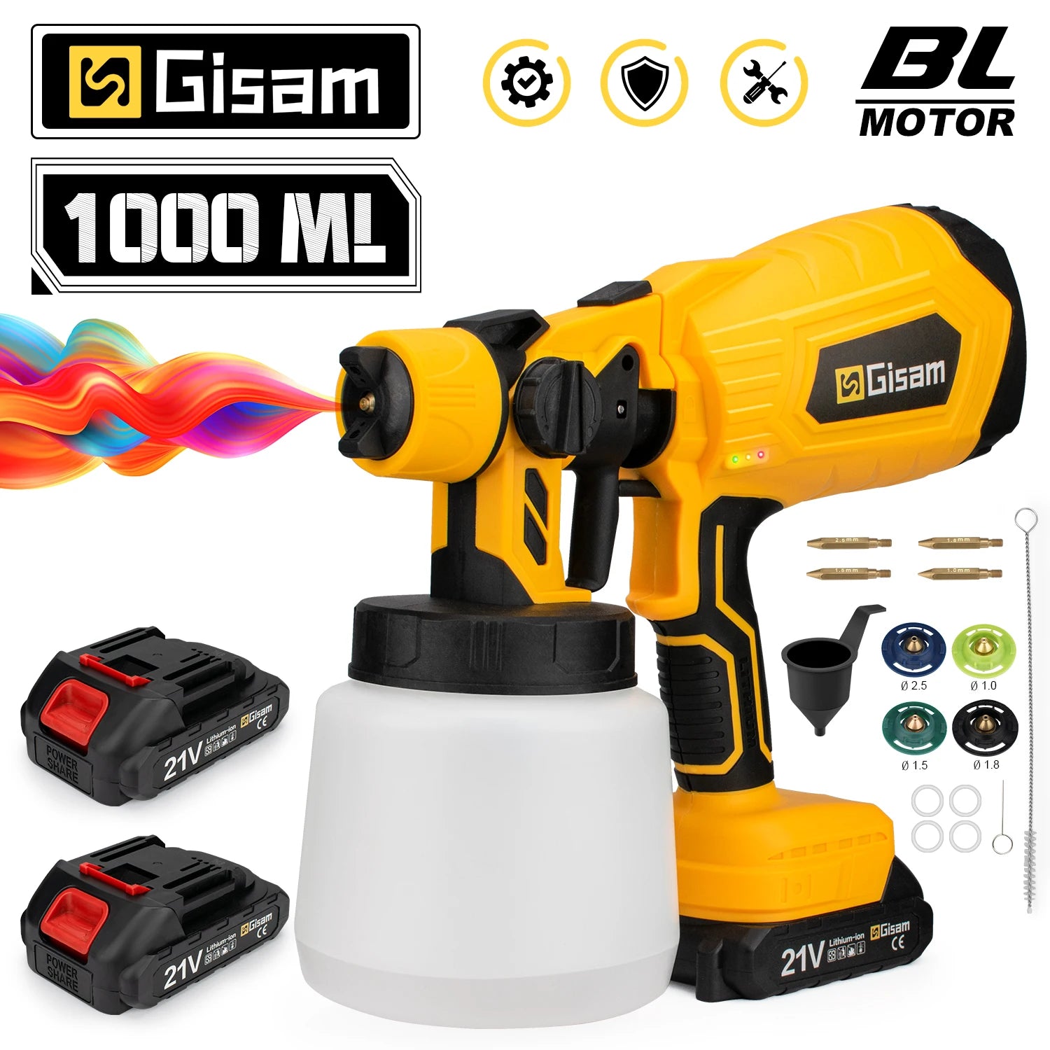 1000ML Brushless Electric Spray Gun Cordless Paint Sprayer HVLP Auto Furniture Steel Coating Airbrush For Makita 18V Battery