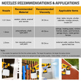 Perfect for all painting projects - as they strain out particles down to 190 microns. and work for all types of solvent or water-based paints, stains, varnishes, epoxy, latex and other liquids. So before use this paint sprayer, please make sure to dilute the paint according to the instruction