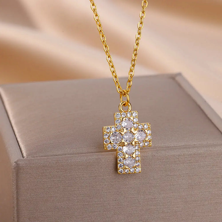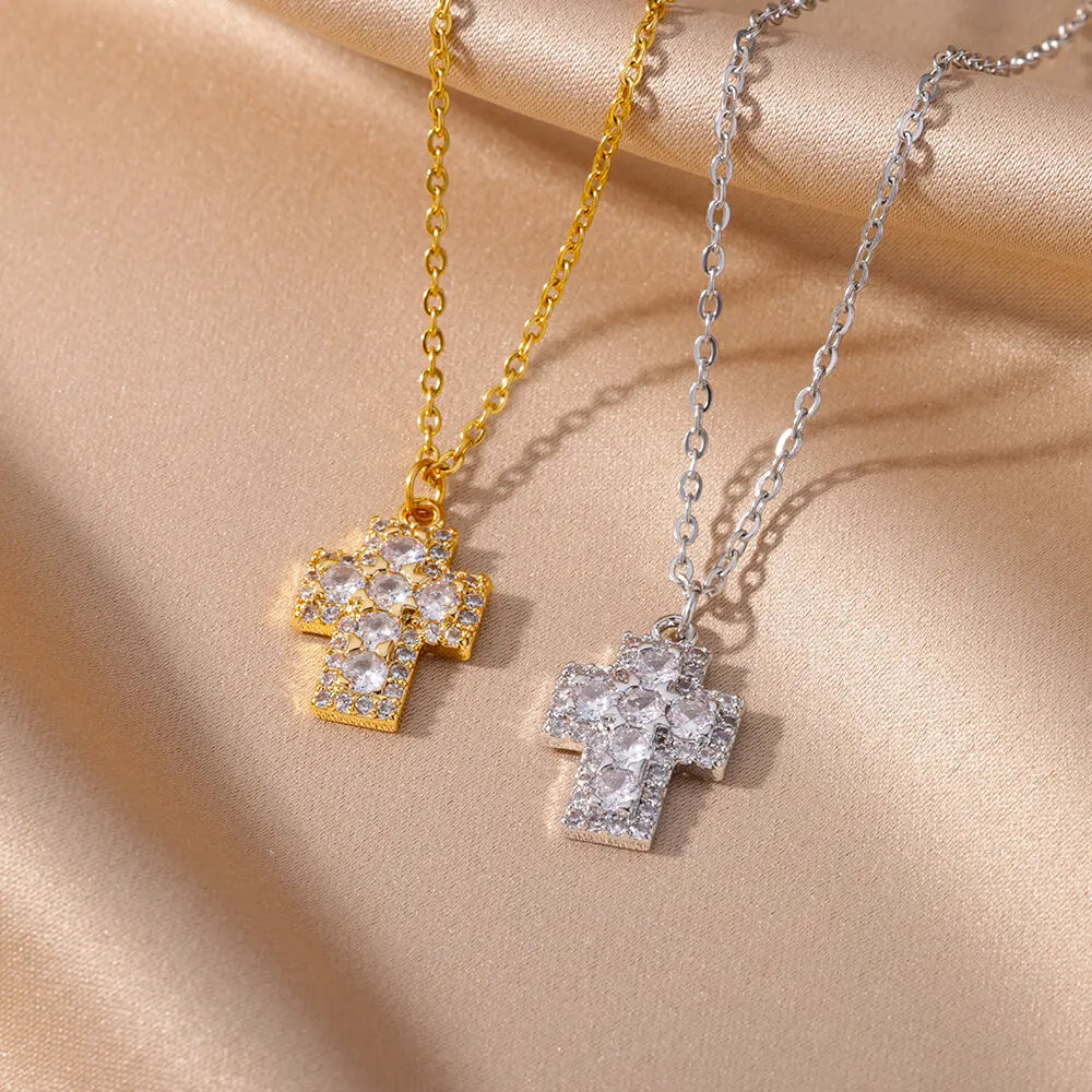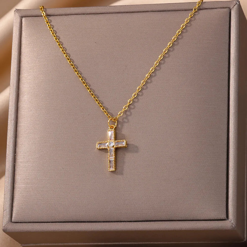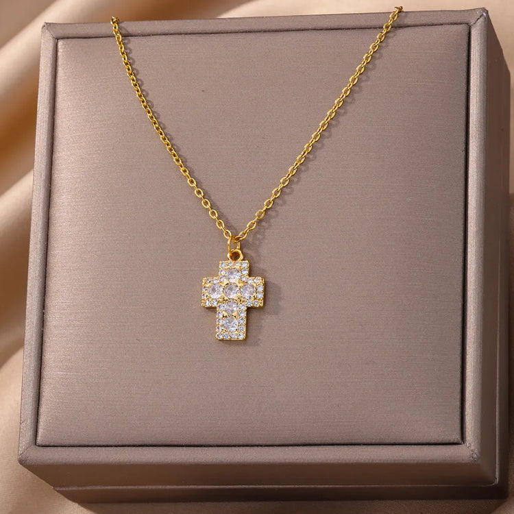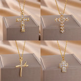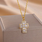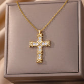 316L Stainless Steel Zircon Jesus Cross Pendant Necklaces For Women Hip Hop Gold Color Cross Necklace Party Jewelry Gift