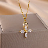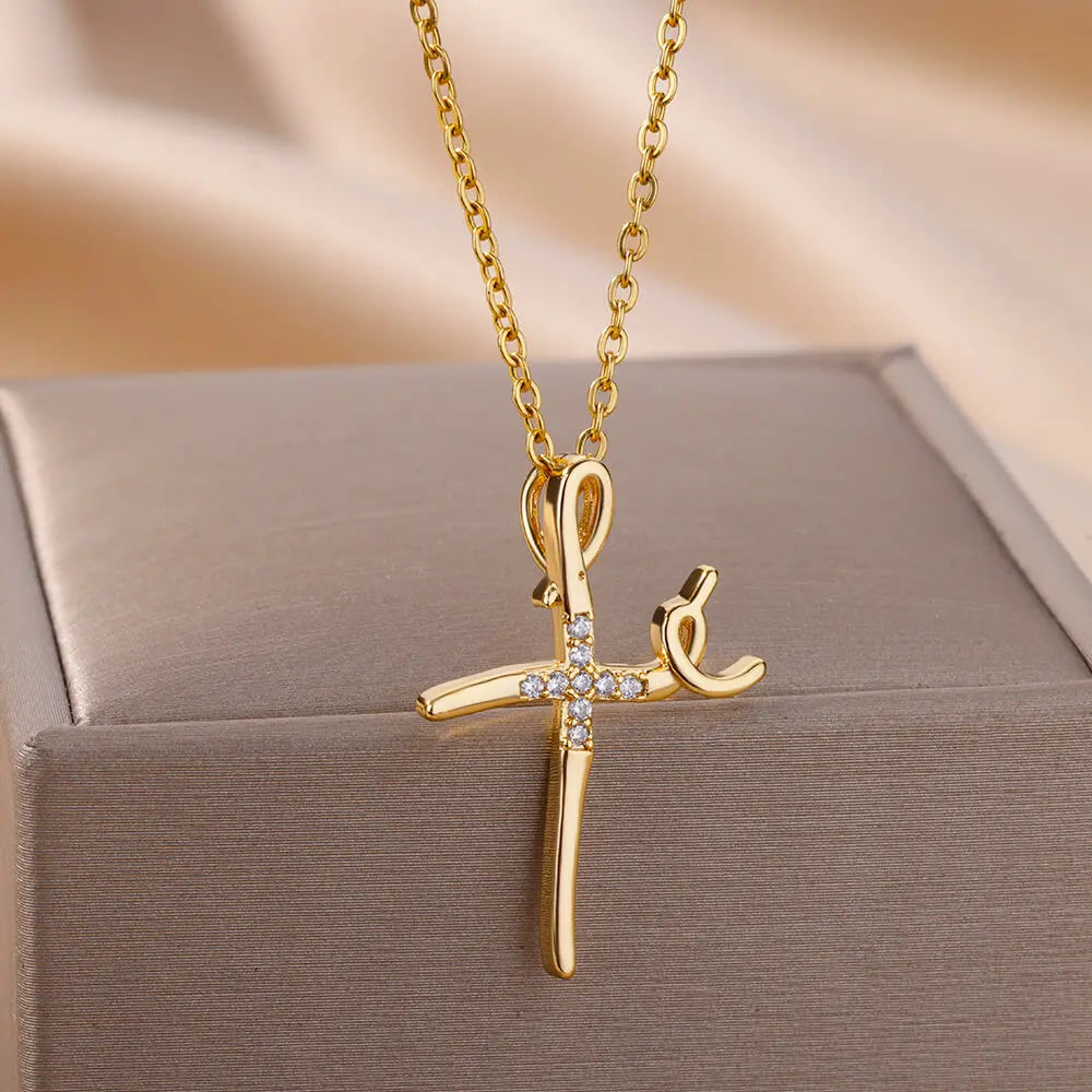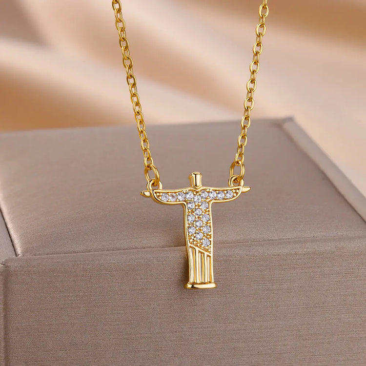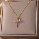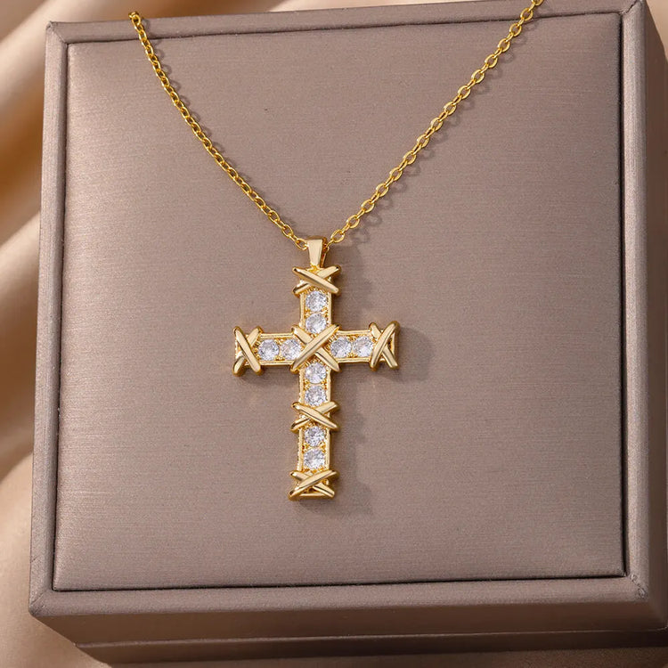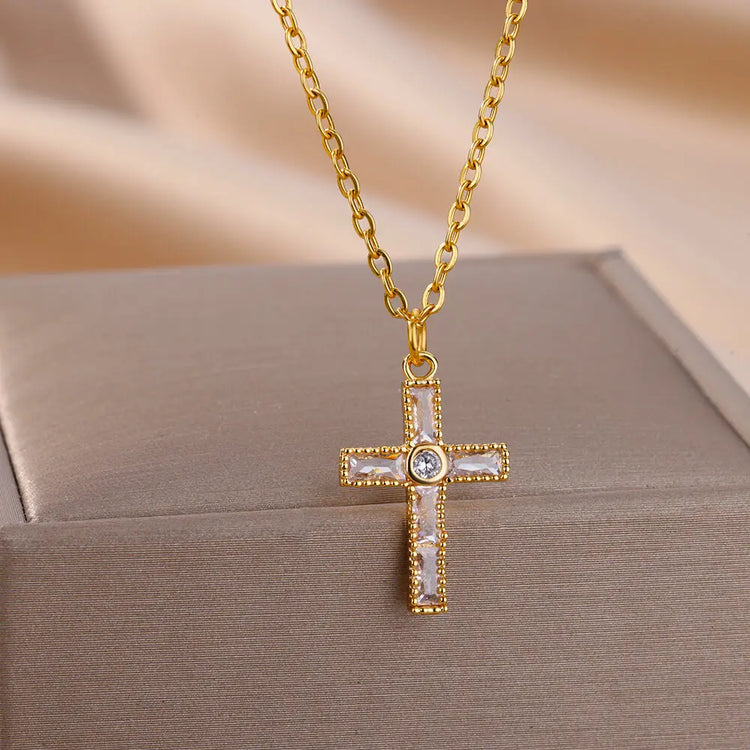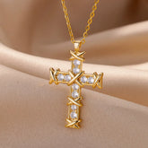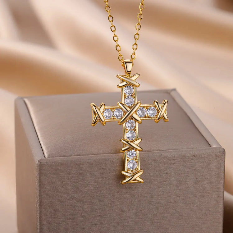 316L Stainless Steel Zircon Jesus Cross Pendant Necklaces For Women Hip Hop Gold Color Cross Necklace Party Jewelry Gift