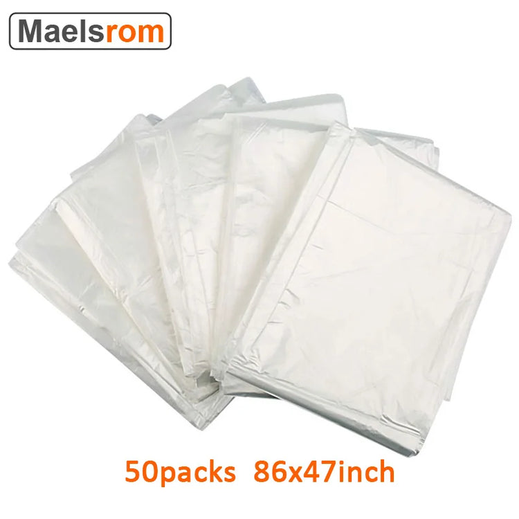 ✅WHAT YOU WILL GET - 50 pieces open size is 47 x 86 inch/120 x 220 cm plastic body wrap sheet (upper opening)