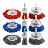 Abrasive Wire Brush Wheel Nylon Filament Drill Wheel Cup Brush Versatile Abrasive Brushes 1/4 Inch Hex Shank 9-Piece Set For