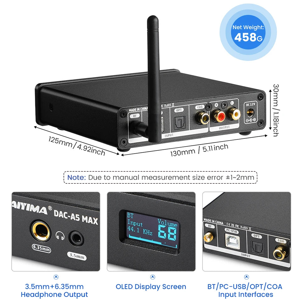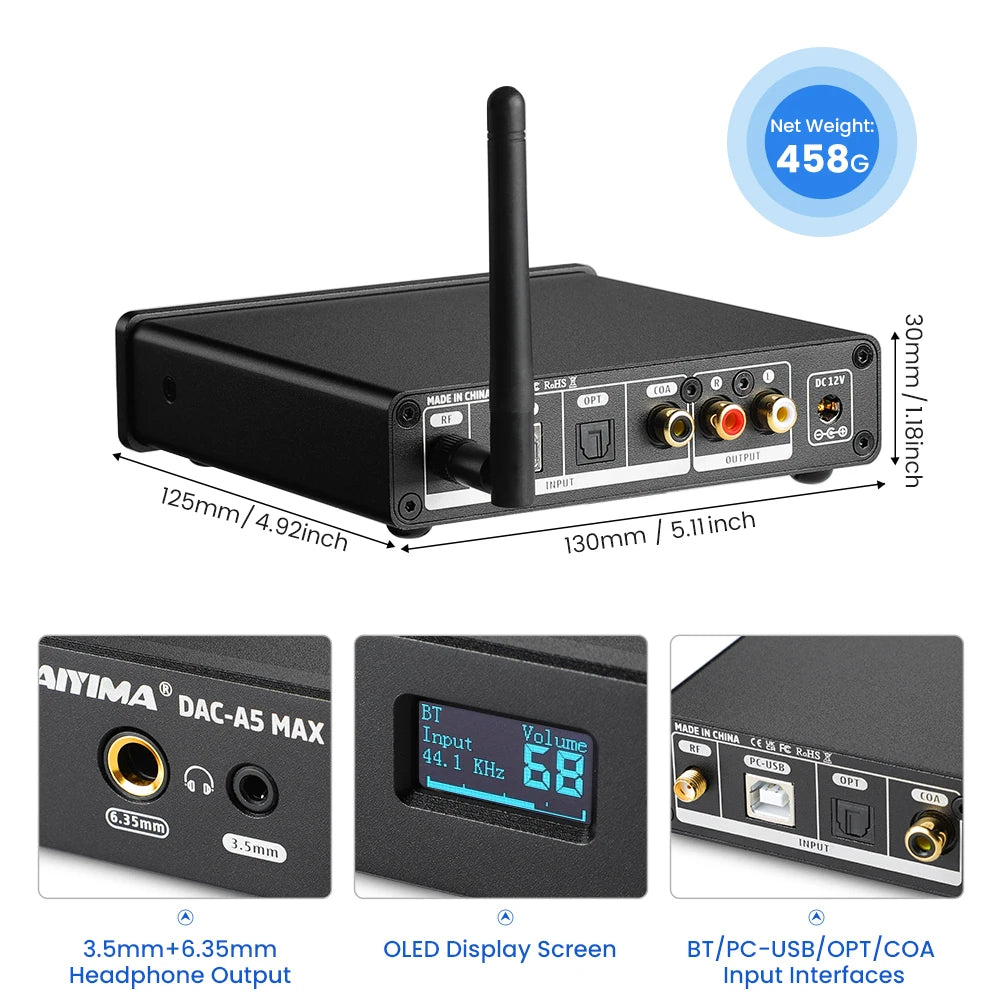 AIYIMA Audio A5 Max Mini DAC Headphone Amp ES9018K2M Decoder Bluetooth 5.1 APTX-LDAC Support DSD256 PCM384 With Remote Control