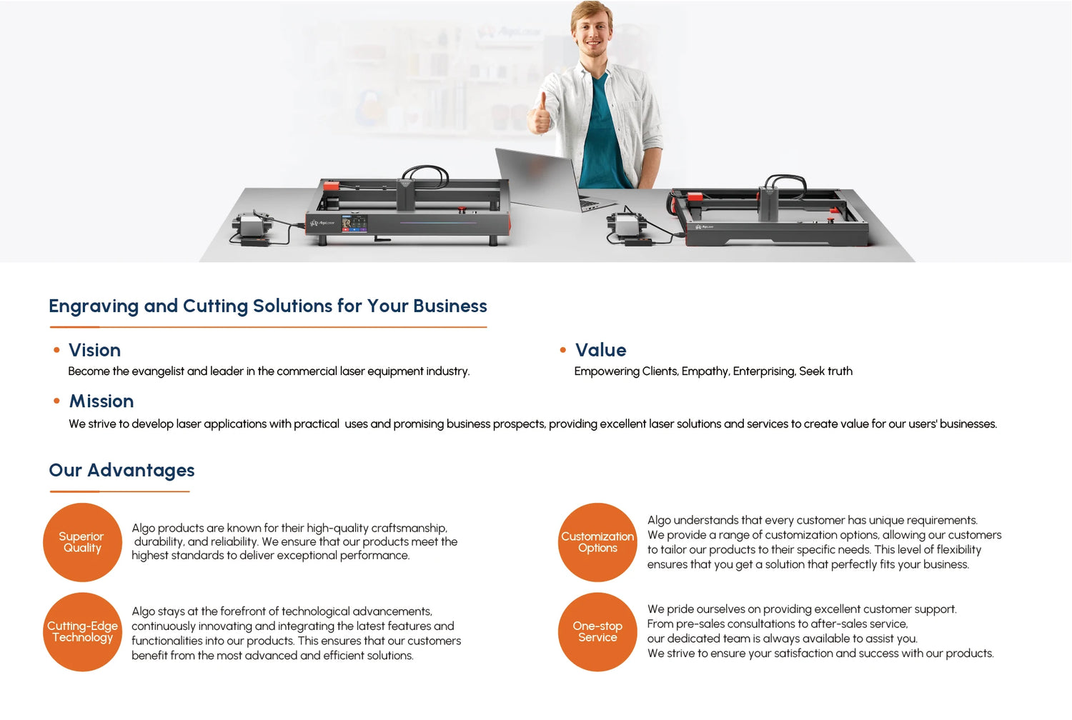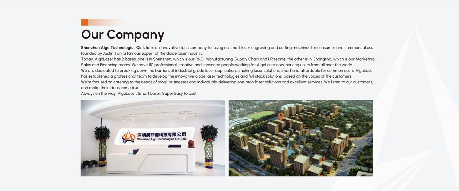 Welcome to AlgoLaser Official Store, we dedicated to offering you laser engraving machines with Fast Delivery, Reliable Quality and Affordable Price. We have lots of inventory in Russian, Czech republic, Spain, United States, Brazil, Mexico and China warehouse, about 3-7 Business Days Fast & Free Shipping. And we are original AlgoLaser original manufacturer in Shenzhen, China, you could rely on us for the consistent quality and service!