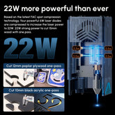 1. 【Super High 22W Optical Power】: The most advanced COS technology allowing cut 30mm pine board/10mm black acrylic board/5mm MDF and even 0.1mm stainless steel sheet at one time. can easily cut 50mm thick wood and 50mm thick black acrylic with multiple operations; it can directly engrave mirror stainless steel, ceramics, opaque glass and other materials.
