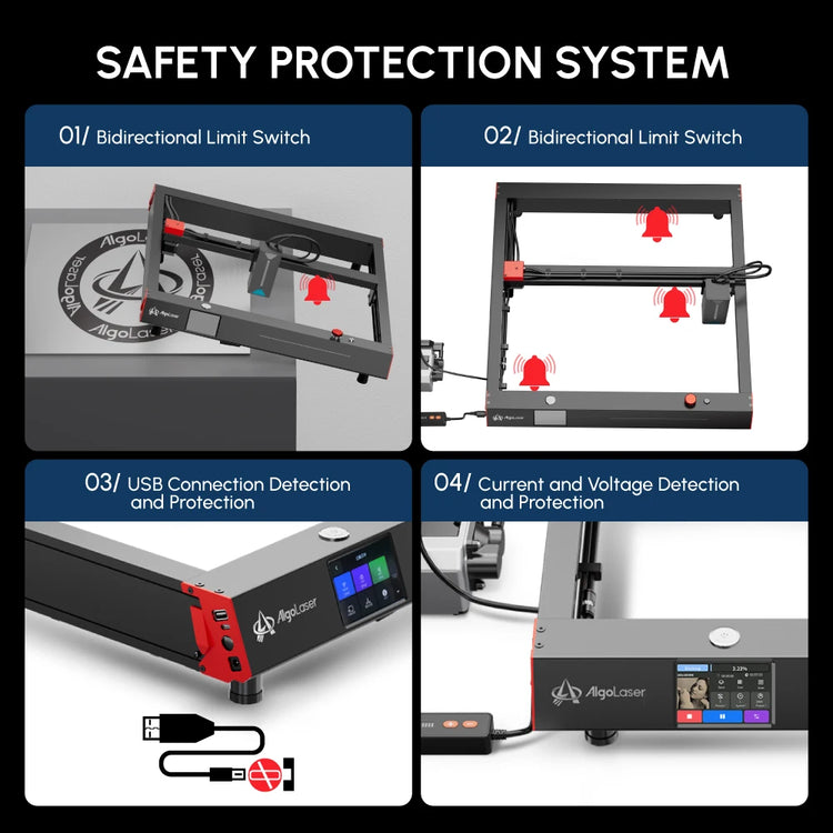 Enhanced precision and an extremely stable working frame on an all-metal body make high-resolution engraving and cutting possibility at breakneck speeds. Under high-speed operation, the laser head does not vibrate with Algolaser unique design, so there are no wavy lines made on your project during the engraving process. The load-bearing capacity of the Algolaser 22W is 200-300kg. Not only it is high quality and durable, but it is also consistently provides superior performance and safety protections.