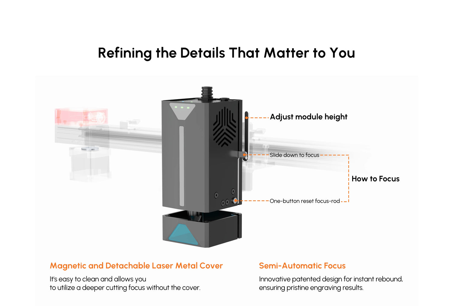 Magnetic and Detachable Laser Metal Cover: It's easy to clean and allows you to utilize a deeper cutting focus without the cover.