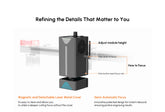 Laser Fixture: A revolutionary self-developed fixture, providing enhanced stability compared to single-point fixtures. The innovative Dual-Side Fixture Structure allows for 0.01 mm precision adjustment, which is convenient for precise positioning when engraving and cutting items that are oversized or very small. It is also quicker and more convenient to adjust the height of the laser.
