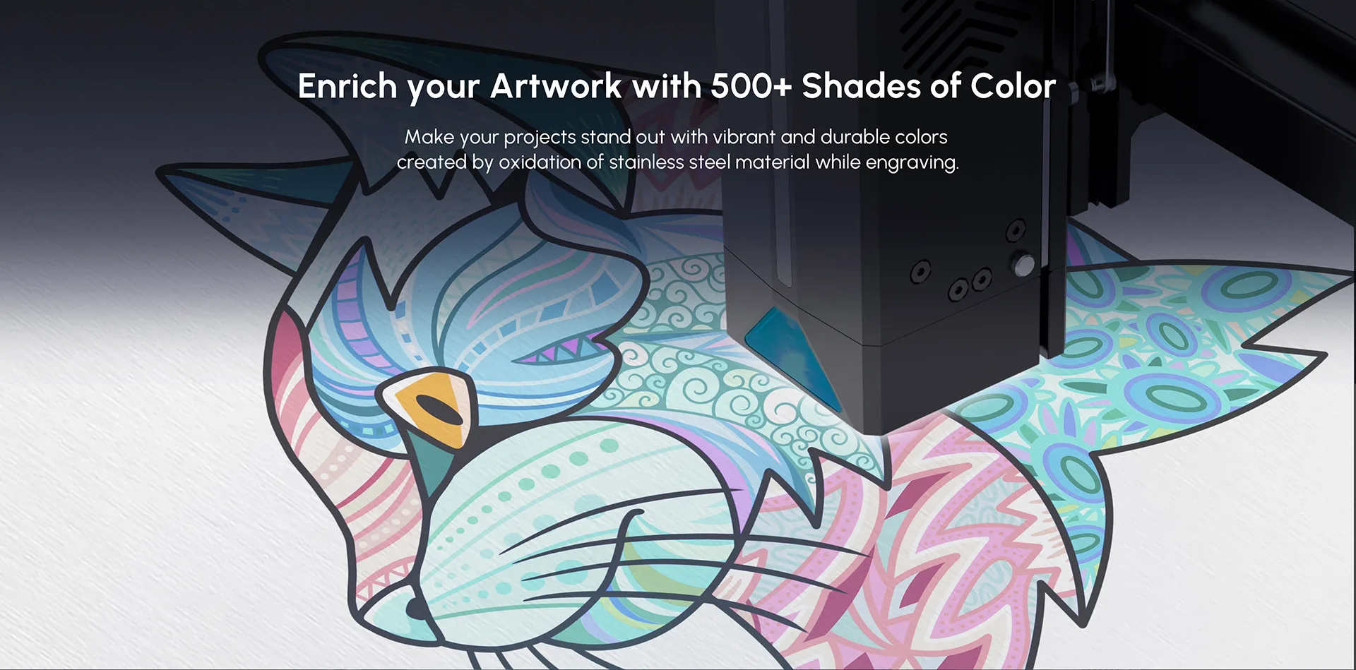 4.【500+ Colorful Engraving on Metal Material】Algolaser breaks the Metal engraving technical difficulties, which will no longer be limited to black, gray, and brown.expanding your color palette to 500+ colors that will take your creativity to the next level. Use the correct parameters to let the laser bring your metal creations to life.