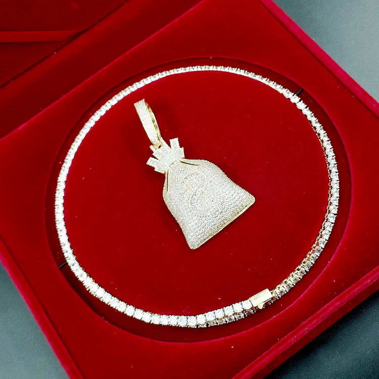 Aokaishen Money Bag Pendant Gold Color Bling Cubic Zircon Men's Hip Hop Necklace Jewelry