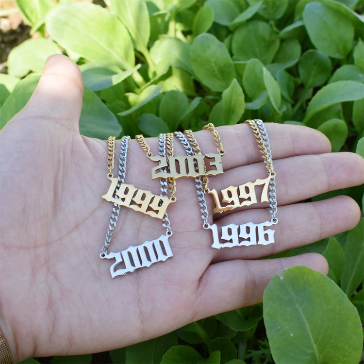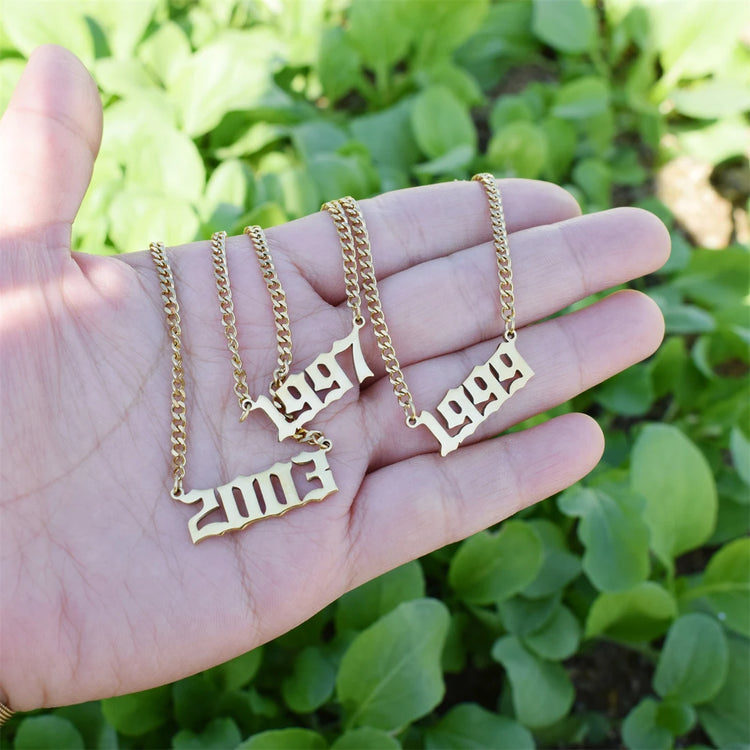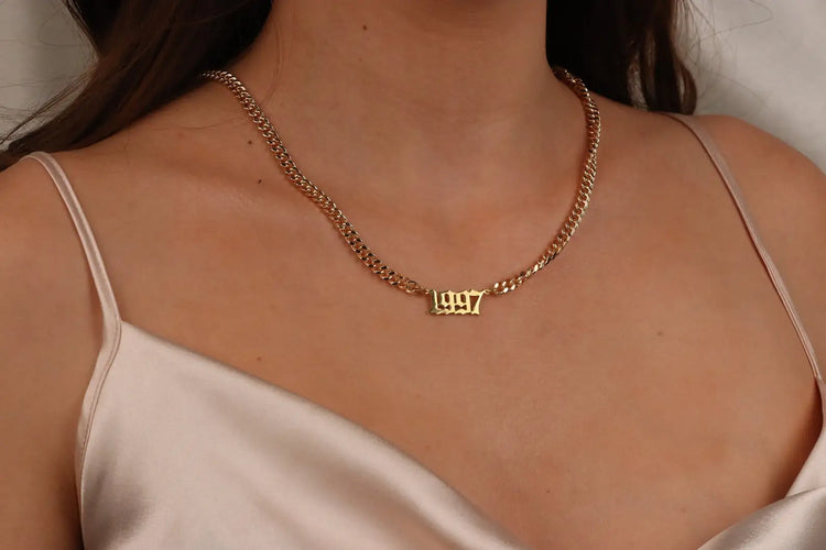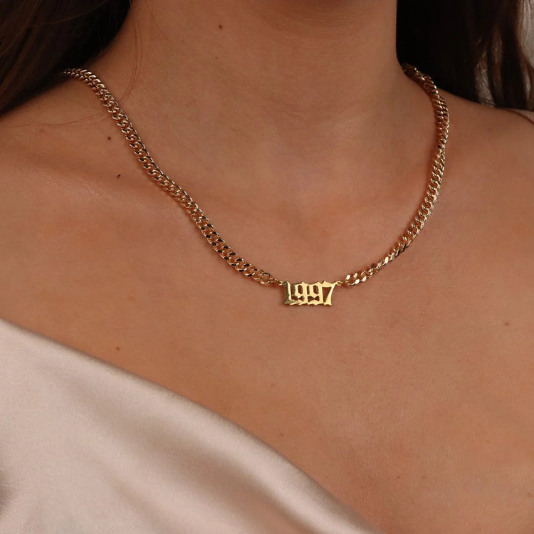 Cuban Chain Birth Year Necklace For Women 1996 1997 1998 1999 2000 2001 Stainless Steel Choker Necklace Collier Femme
