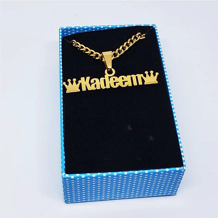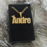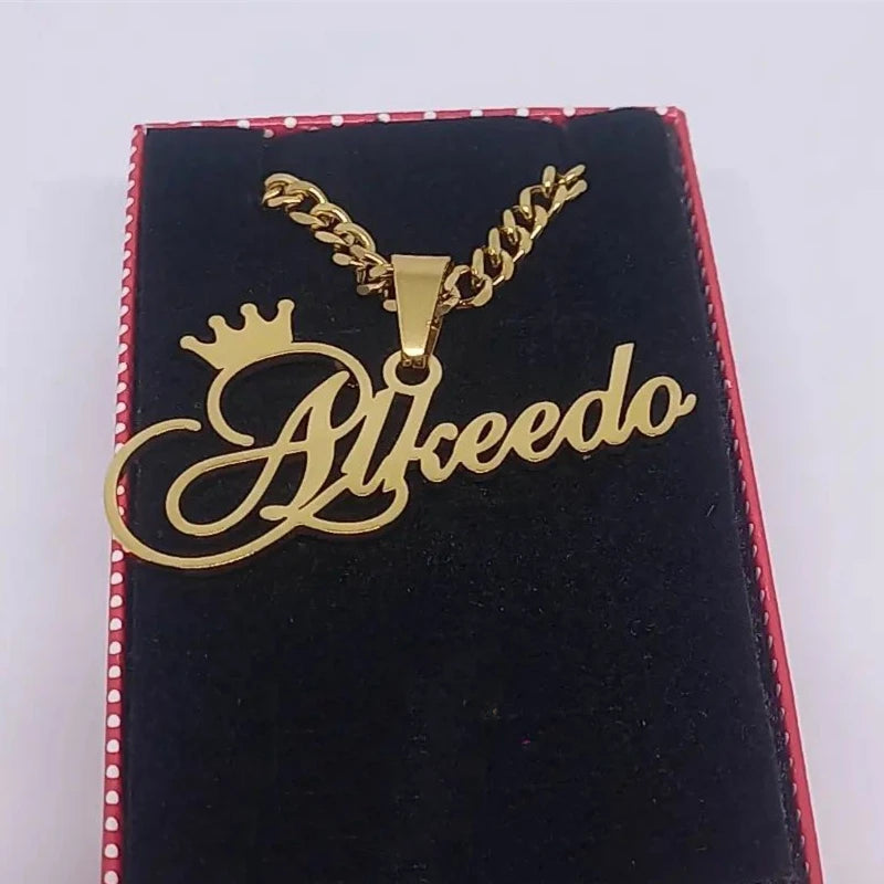 Custom Bold Name Cuban Chain Necklace Women Men Jewelry Stainless Steel Gold Color Nameplate Crown Pendant Necklace Friend Gifts