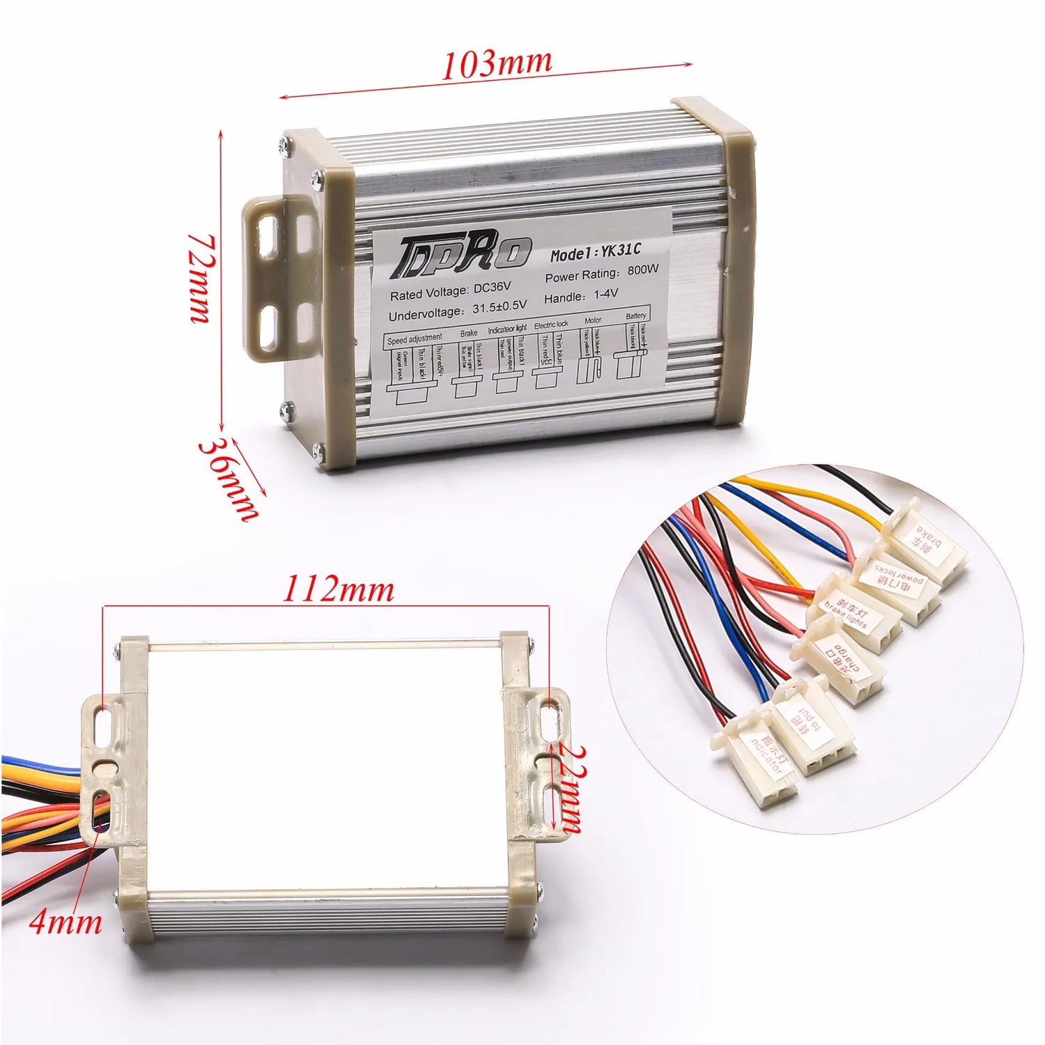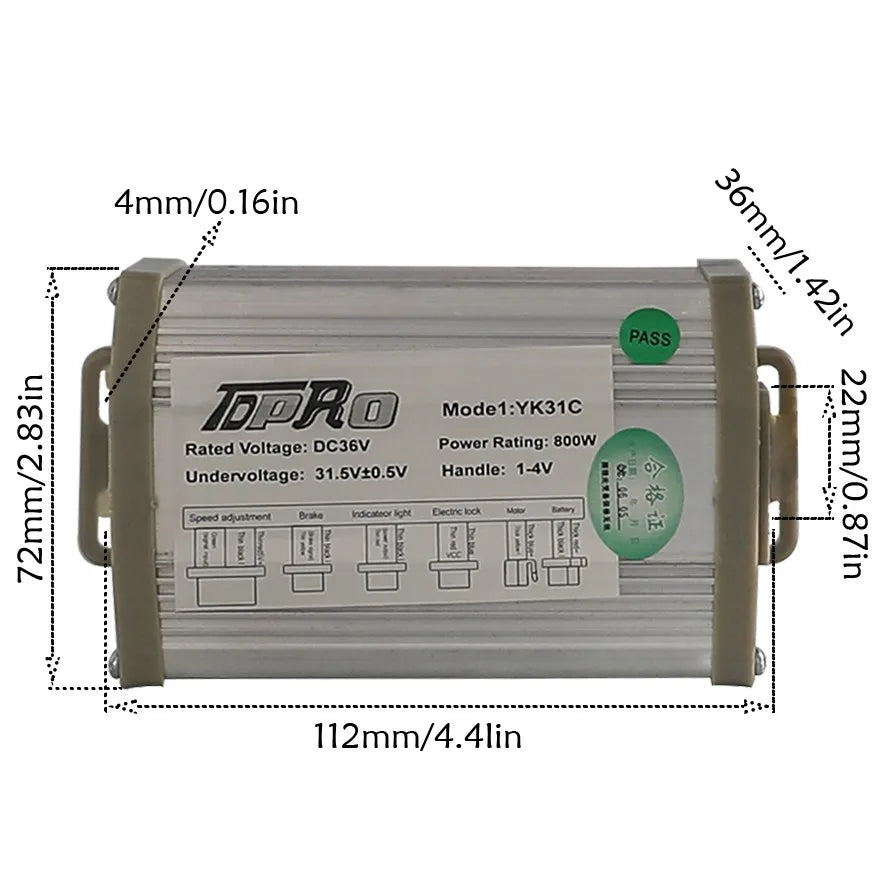 Works on 36V, 800W scooters and electric bikes