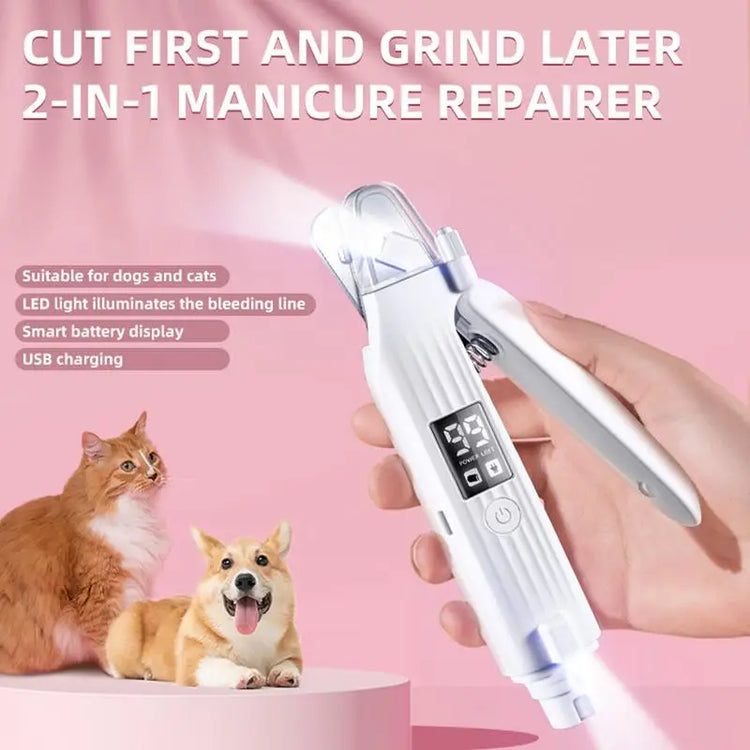 Dog Nail Grinder Electric Rechargeable Dog Nail Trimmer With LED Light Ergonomic Pet Paws Grooming Tool Quiet File Toenail