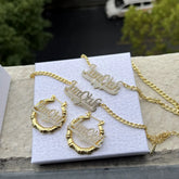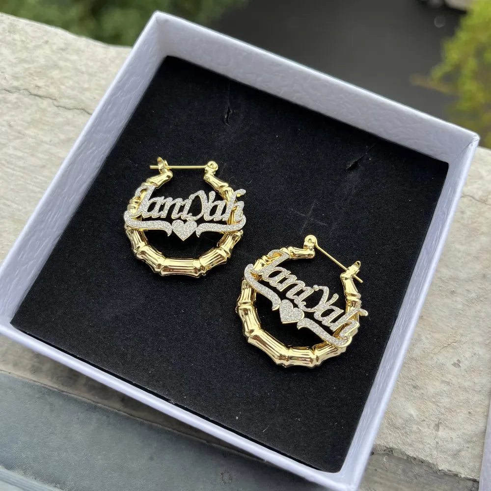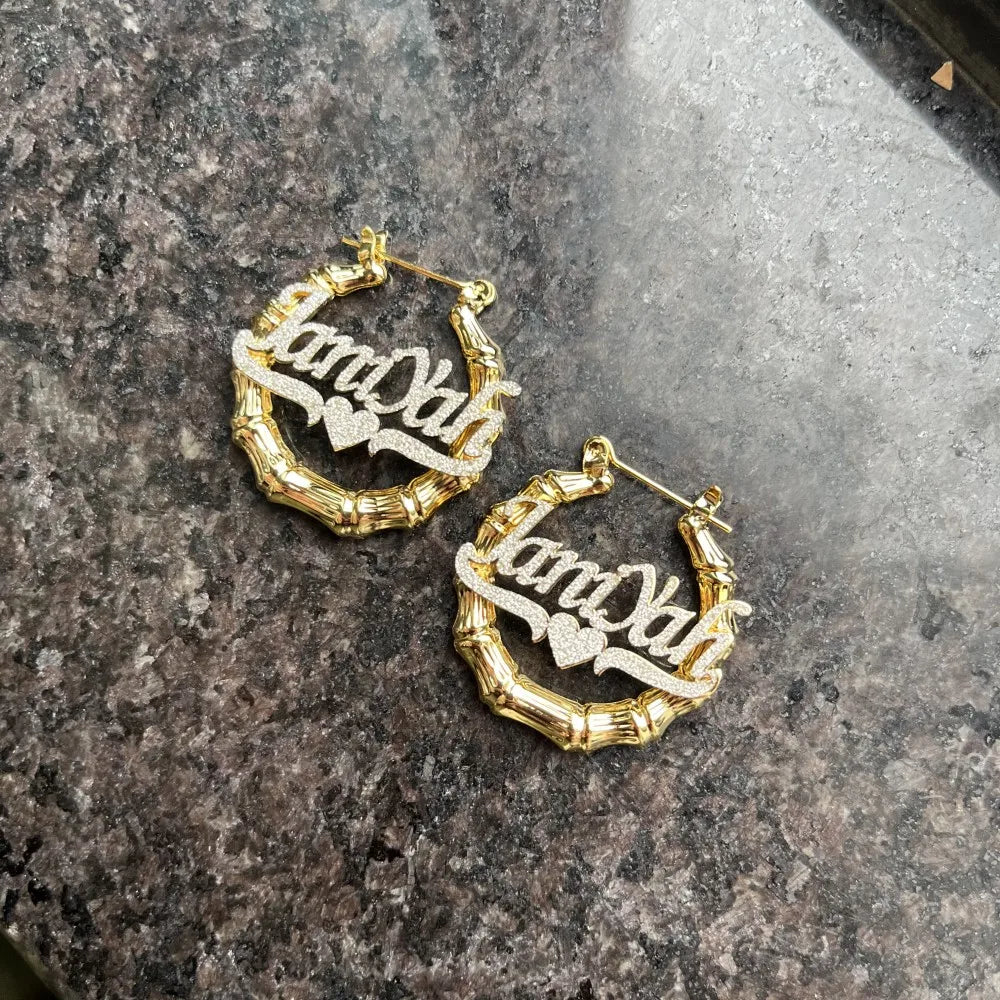 DUOYING Custom Bamboo Set Personalized Cuban Chain Namaplate Necklace Bling Thicker Letter Bracelet 30mm Bamboo Hoops Jewelry