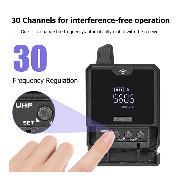 1. UHF 520-580MHz , 30 selectable frequencies for interference-free performance.