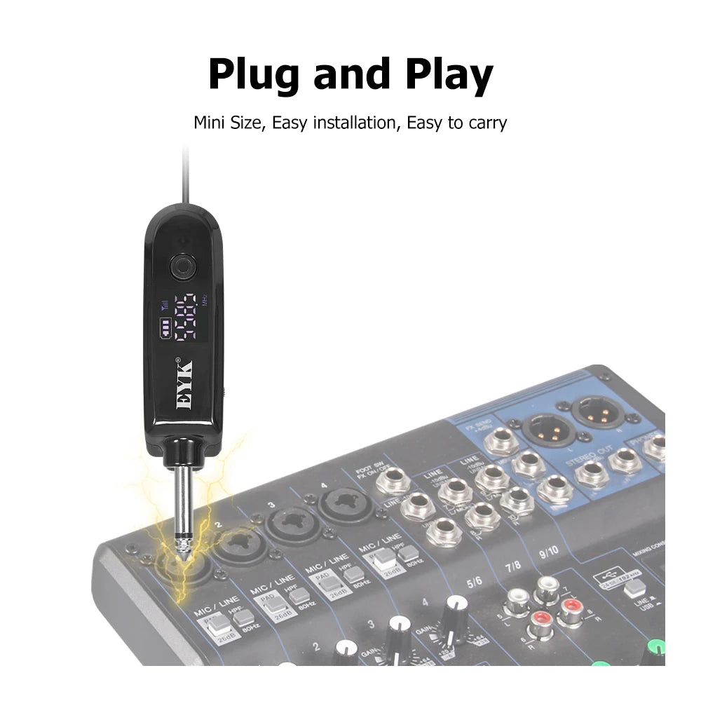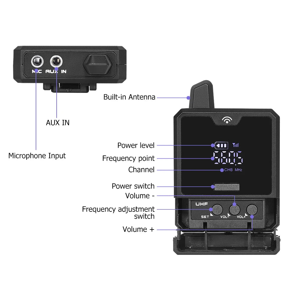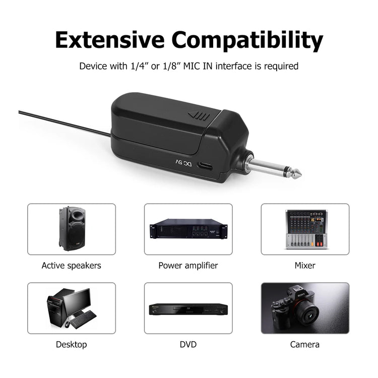 6. Easy to Use : Plug and Play, Plug the mini receiver into the mic socket of any powered speaker, mixer, amplifier, digital recorder or some DLSR cameras for audio output, power on the mini receiver and microphone, it is ready to go, Easy to use.