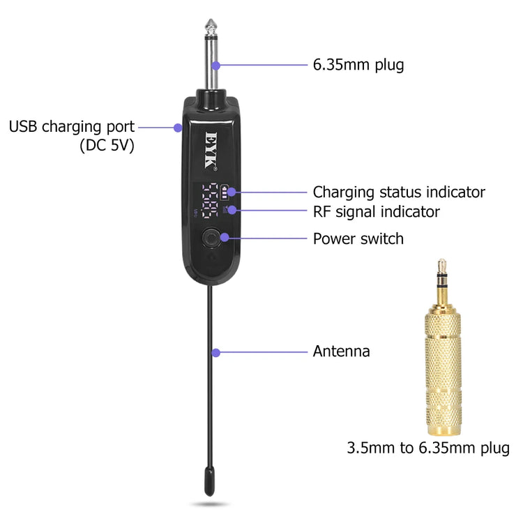 4. Receiver has 6.35mm (1/4") output and a 3.5mm adapter as gift.