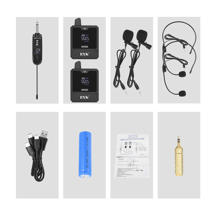 EYK EW102 Dual Channels Wireless Headset Microphone UHF Lavalier Mic Rechargeable for Teaching Speech Interview Live Recording