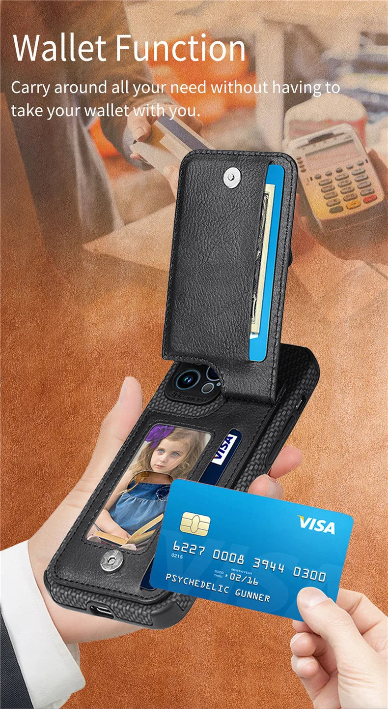 For iPhone wallet case for men & women credit card slots, Magnetic clasp keeps closed and protected,without having to take an extra wallet when going outside.