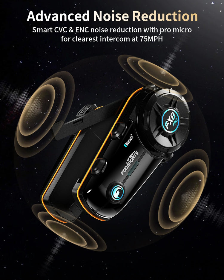 Fodsports FX8 Pro Motorcycle Intercom Helmet Bluetooth Headset, 8 Rider 2000M, FM Radio