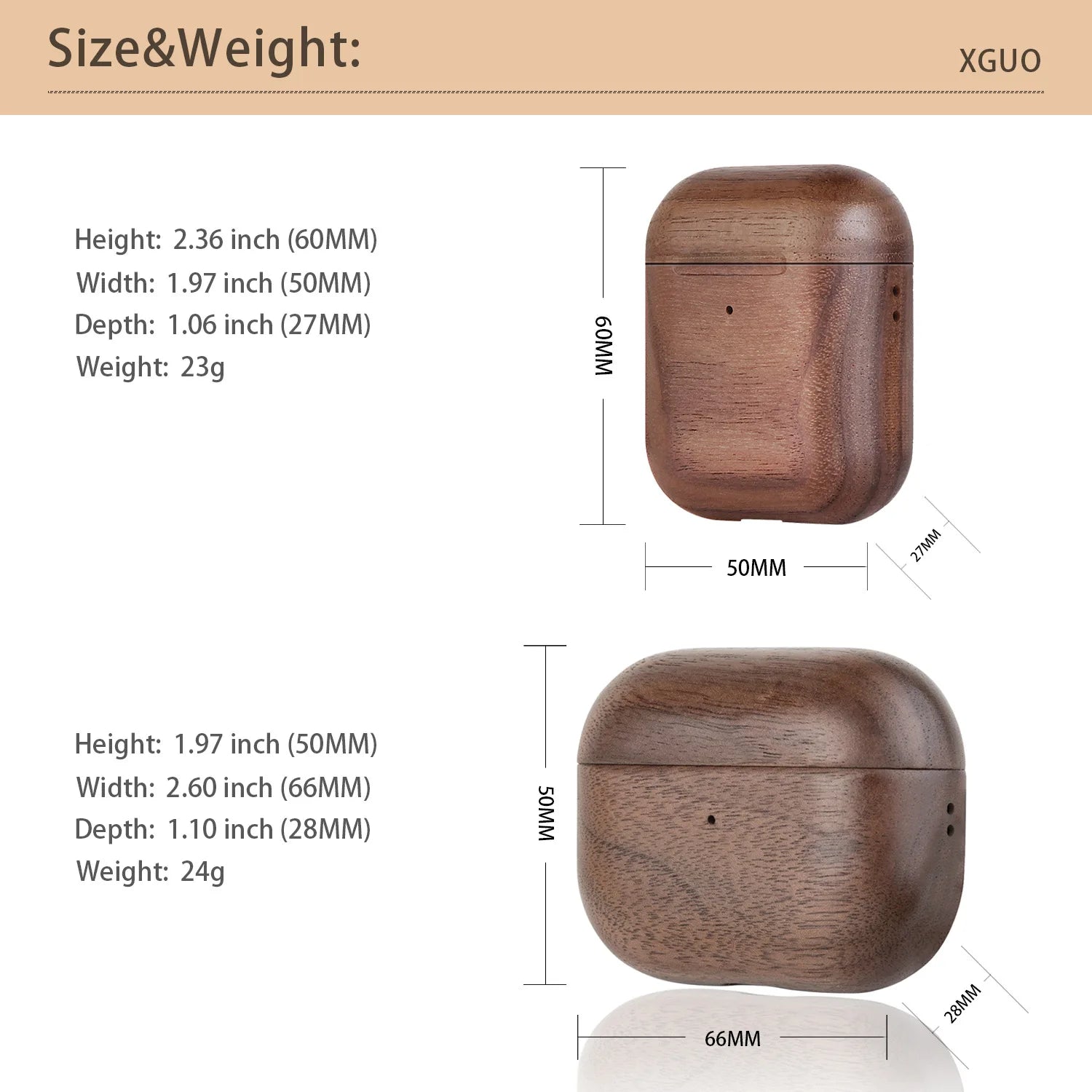 for Airpods Pro AirPods 3 2021 - Cover Case Protector Skin with Wireless Charging Case Made of Unique Wood for Airpods 1/2