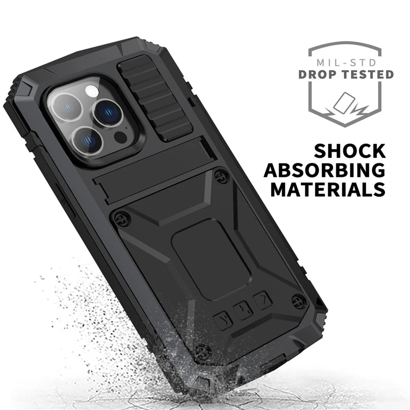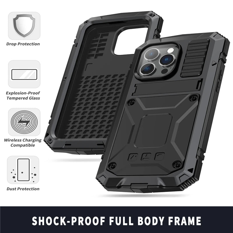 for iPhone 14 13 12 Pro Max Mini 11 Pro Max Case Full-Body Rugged Armor Shockproof Protective Kickstand Aluminum Metal Cover