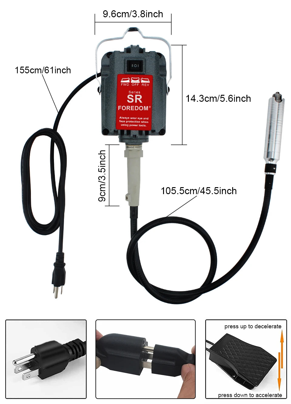 FORDEOM SR Hanging Flex Shaft Grinder 230W Rotary Tool with Stepless Speed Foot Pedal Rotary Carver for Carving, Buffing,Polish