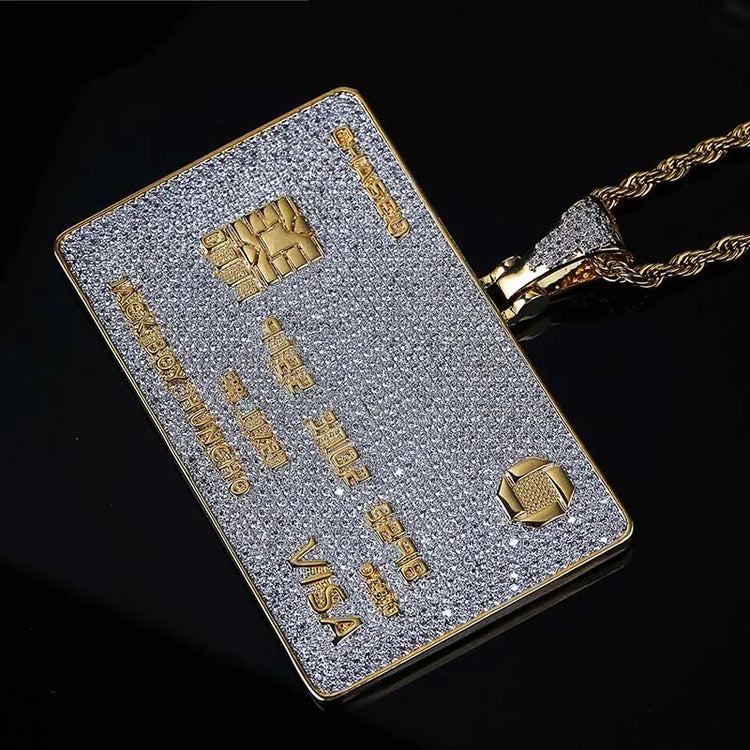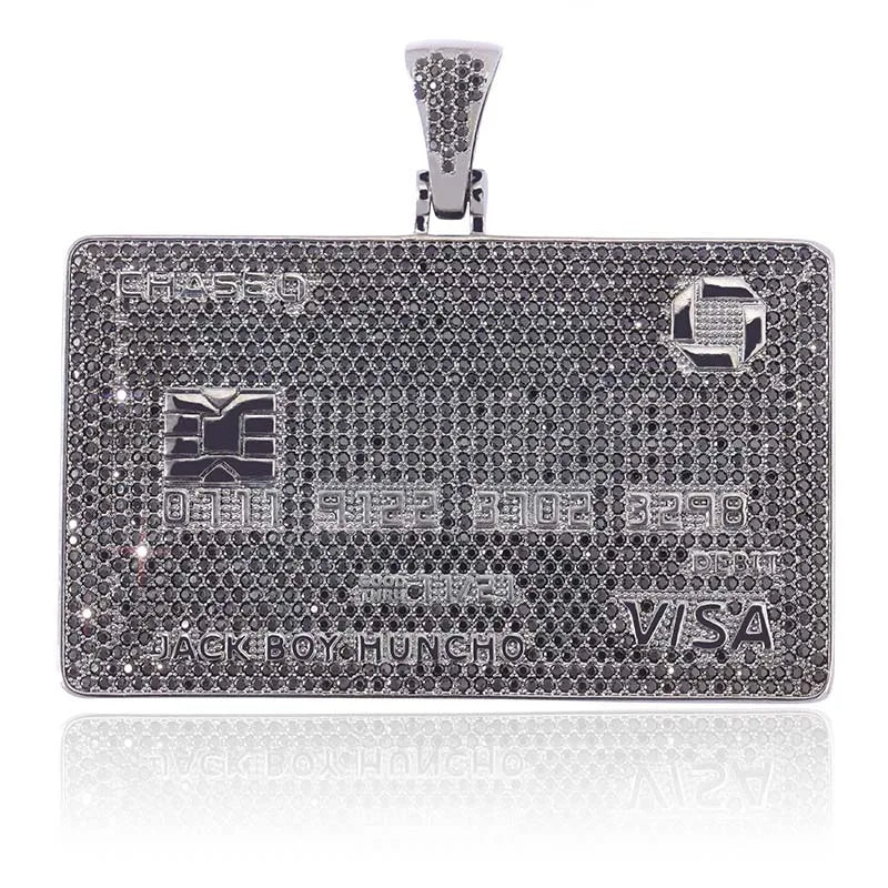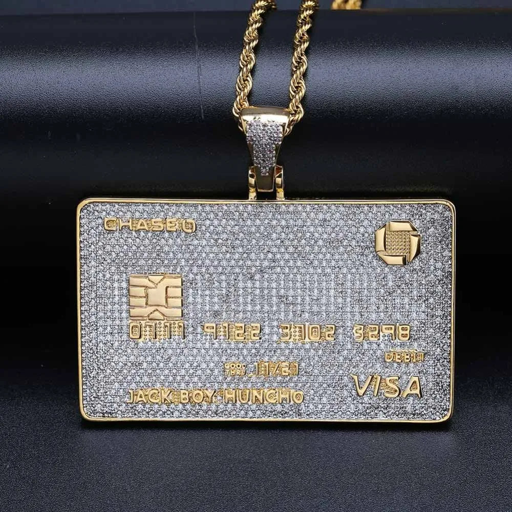 Full Iced Out Credit Card Pendant Necklace Mens Gold Silver Color Hip Hop Jewelry With Tennis Chain Charm CZ Jewelry Gifts