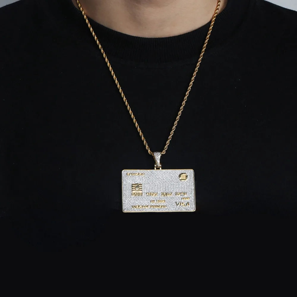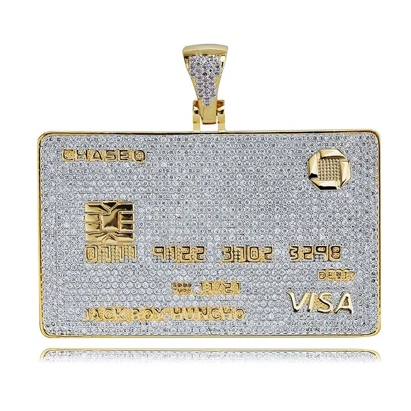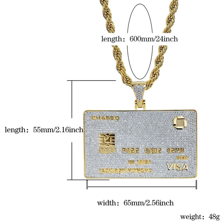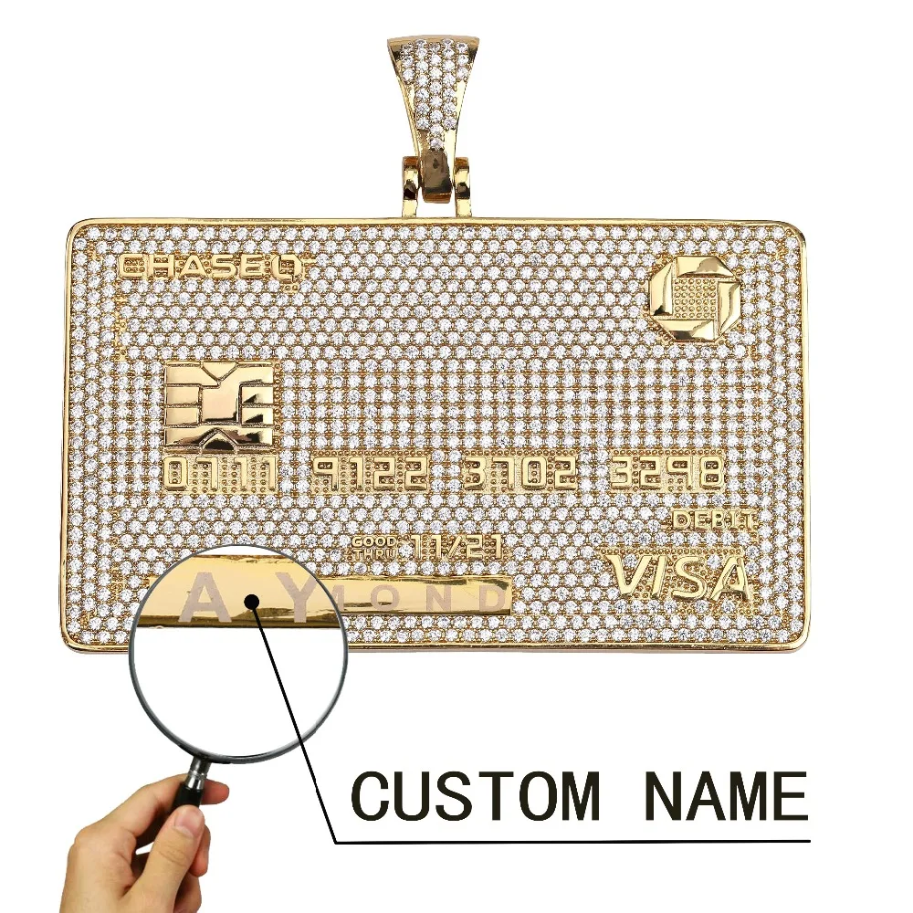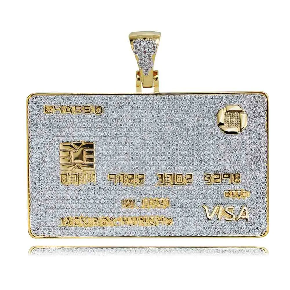 Full Iced Out Credit Card Pendant Necklace Mens Gold Silver Color Hip Hop Jewelry With Tennis Chain Charm CZ Jewelry Gifts