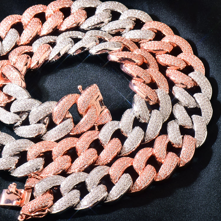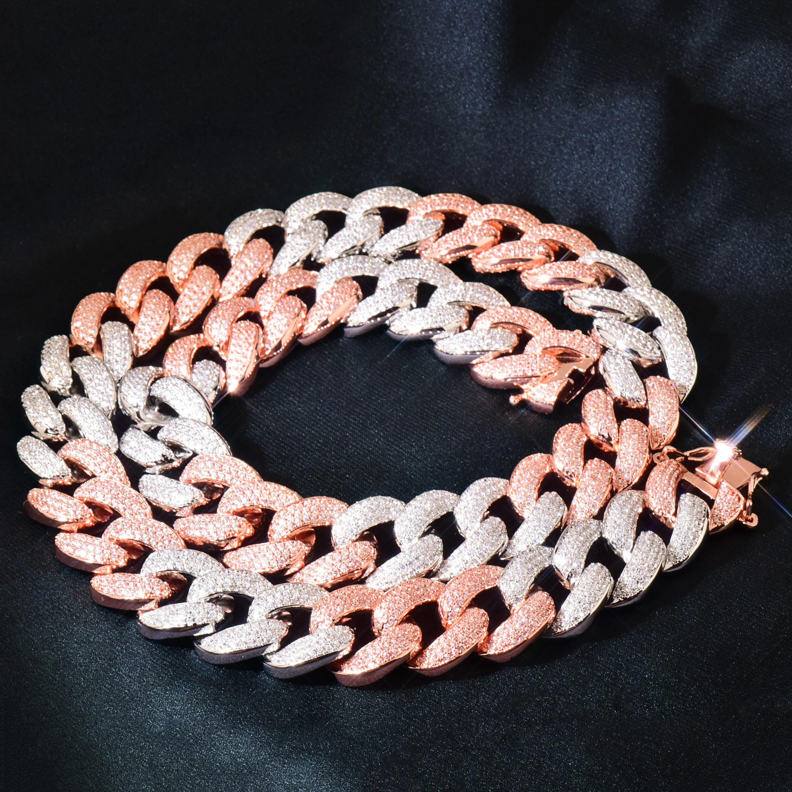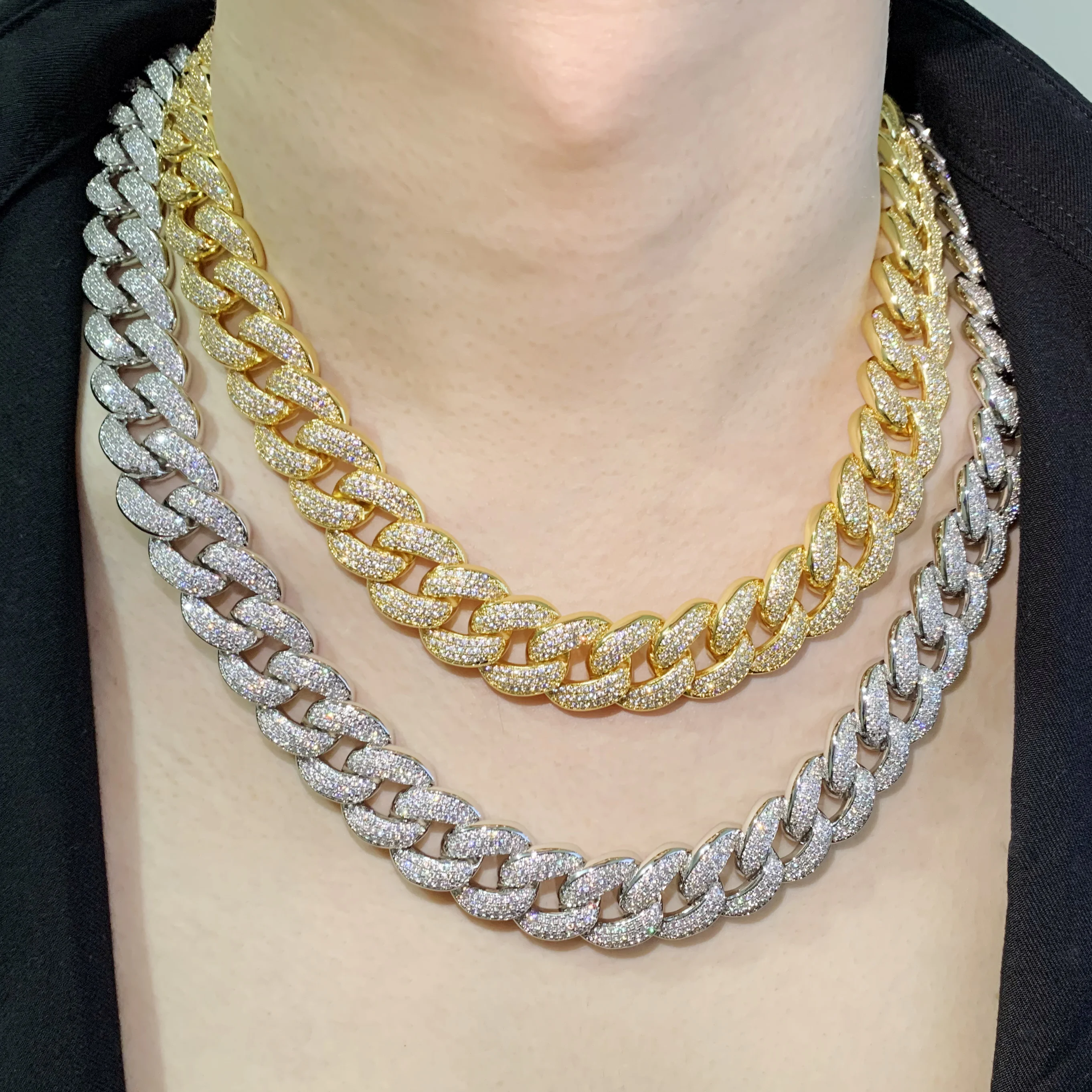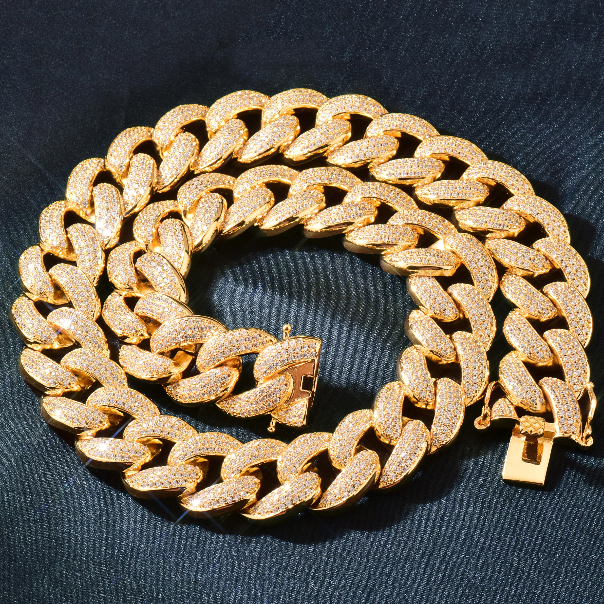 Gold Color Miami Cuban Chain Men Hip Hop Necklace Iced Out Zirconia Link Fashion Rock Rapper Jewelry 20mm