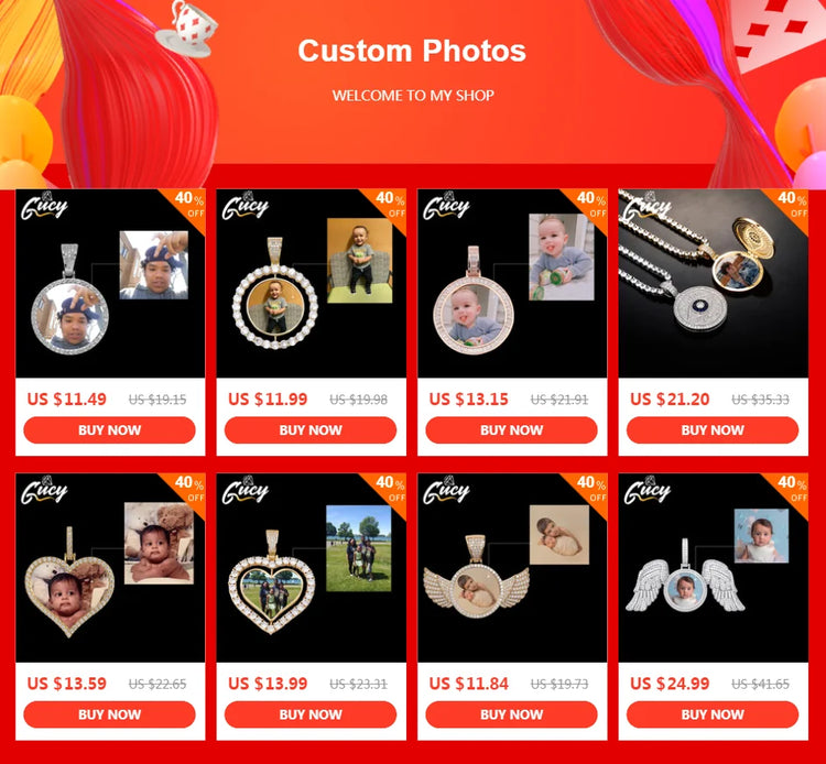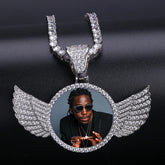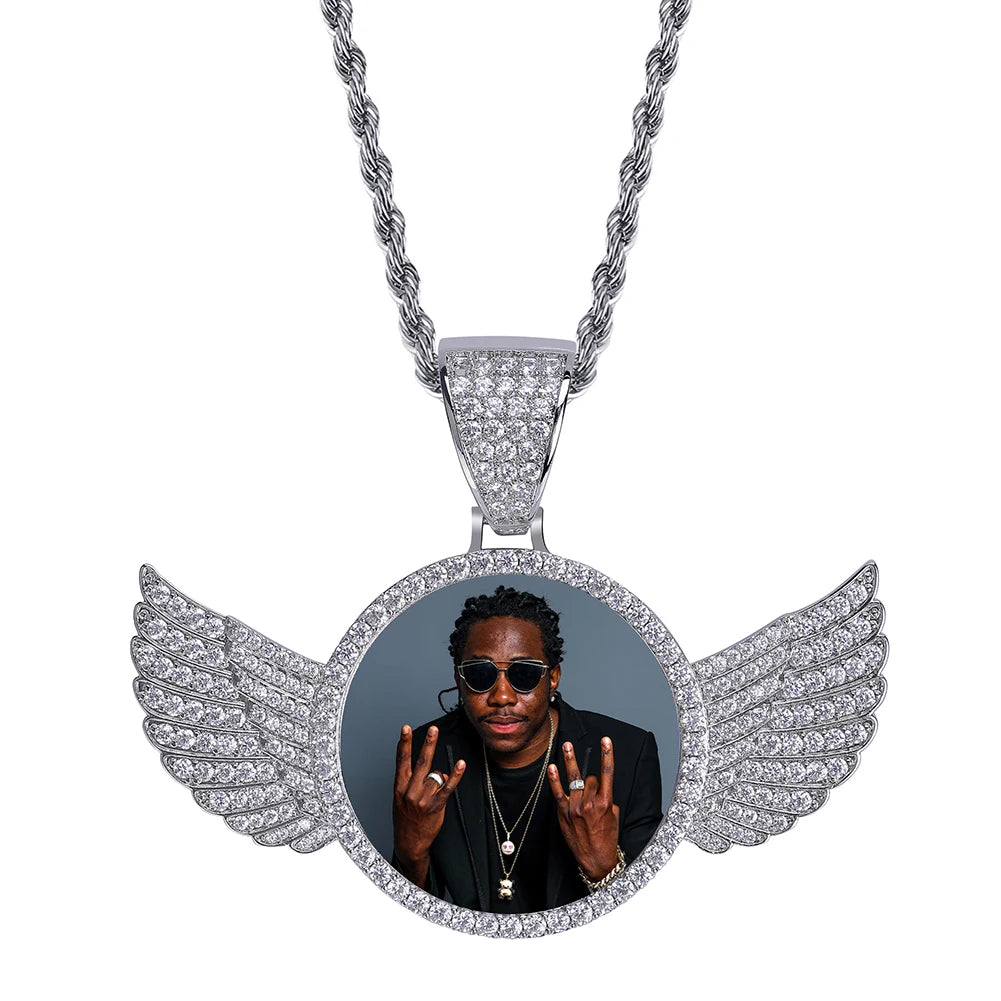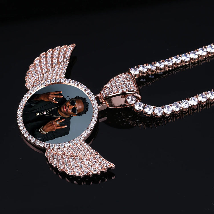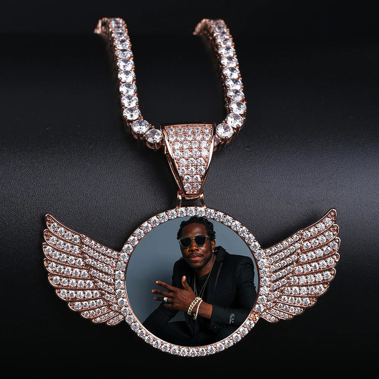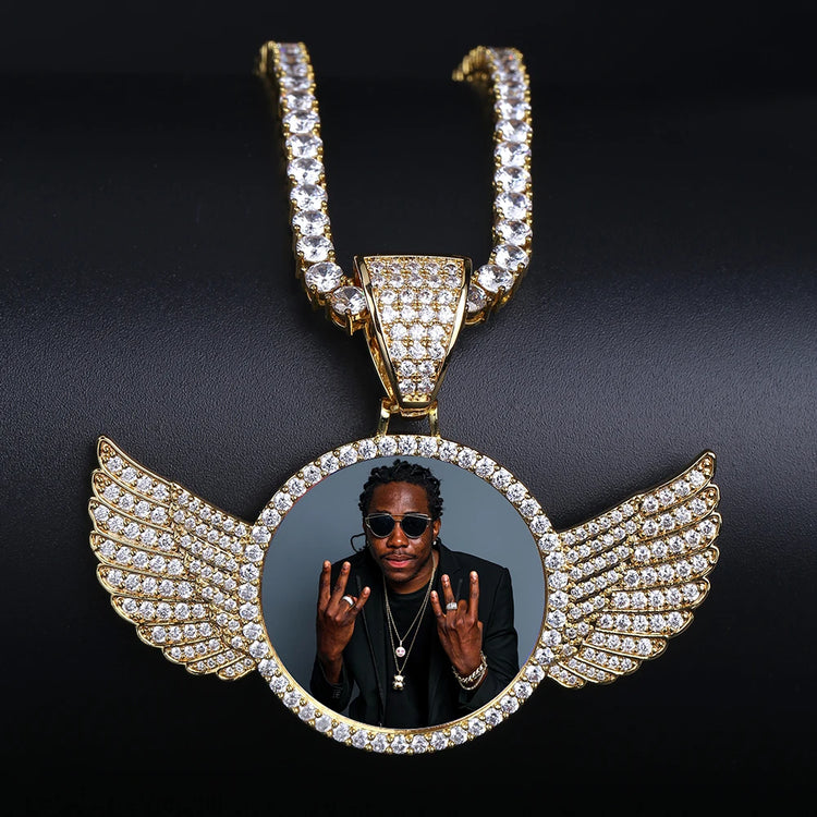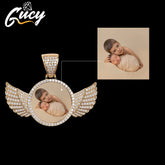 GUCY Custom Made Photo With Sngel Wings Necklace & Pendant 4mm Tennis Chain Cubic Zircon Men's Hip Hop Jewelry