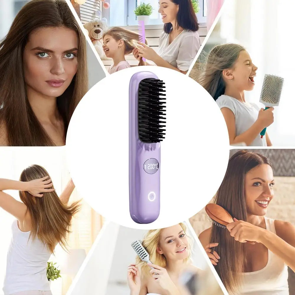 Hair Straightener Brush USB Charging Smoothing Hair Brush Portable Hair Straightener Hair Straightener Straightening Brush for