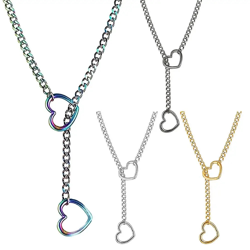 Heart Slip Chain Necklace For Women Punk Rock Long Chain Choker Necklace Gifts Adjustable Goth Jewelry