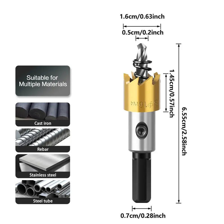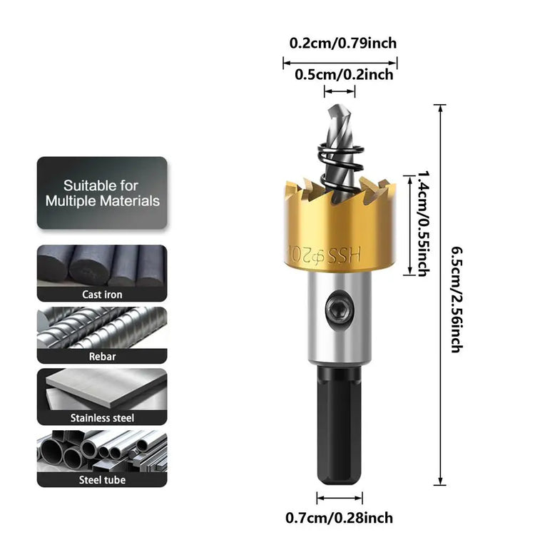 5.Extensive application: This HSS hole saw is ideal for drilling holes in all types of hard metals, including stainless steel, iron, copper, and aluminum.